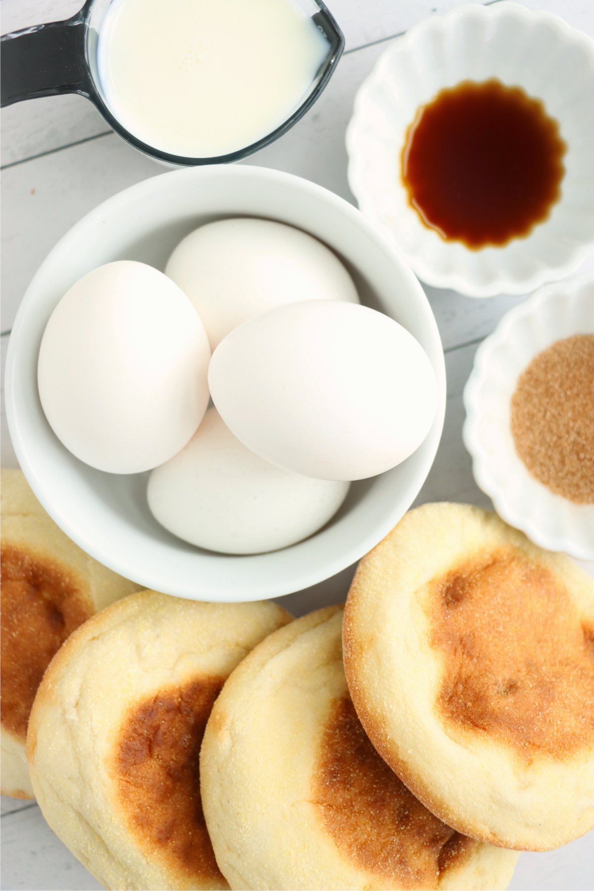 You'll only need a handful of simple ingredients to make this French toast recipe. Be sure to check out the recipe card at the end of the post for exact amounts.
