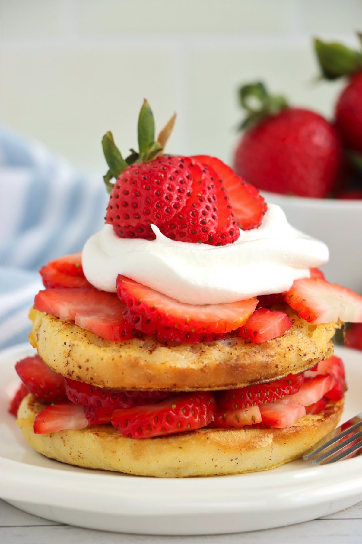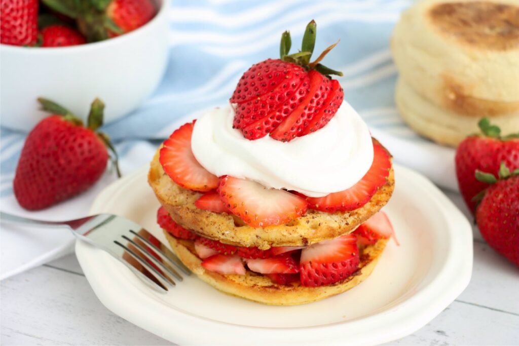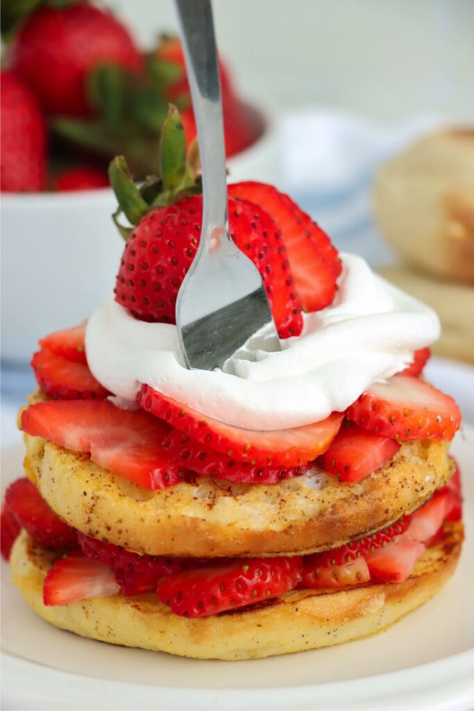 English muffin French toast is rich, sweet, and so easy to make. It's a great base for all kinds of sweet breakfast ideas!