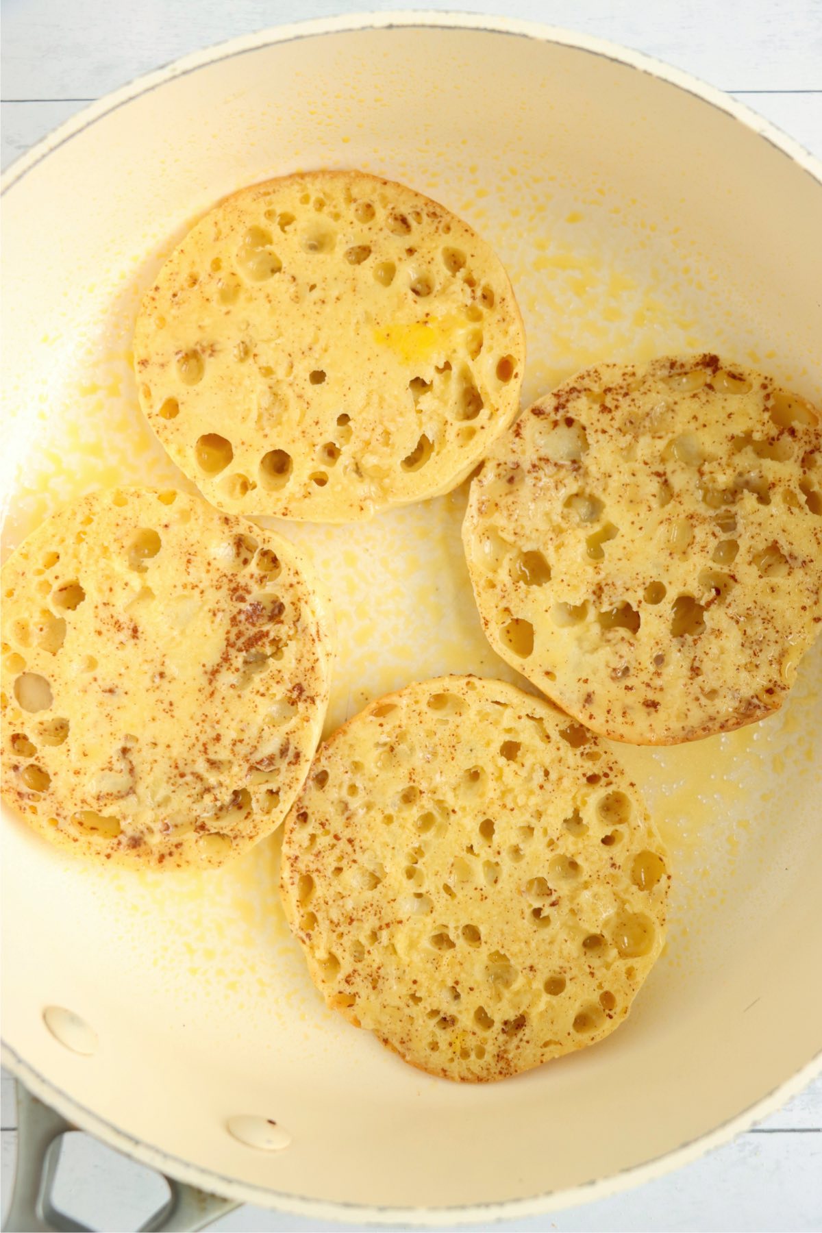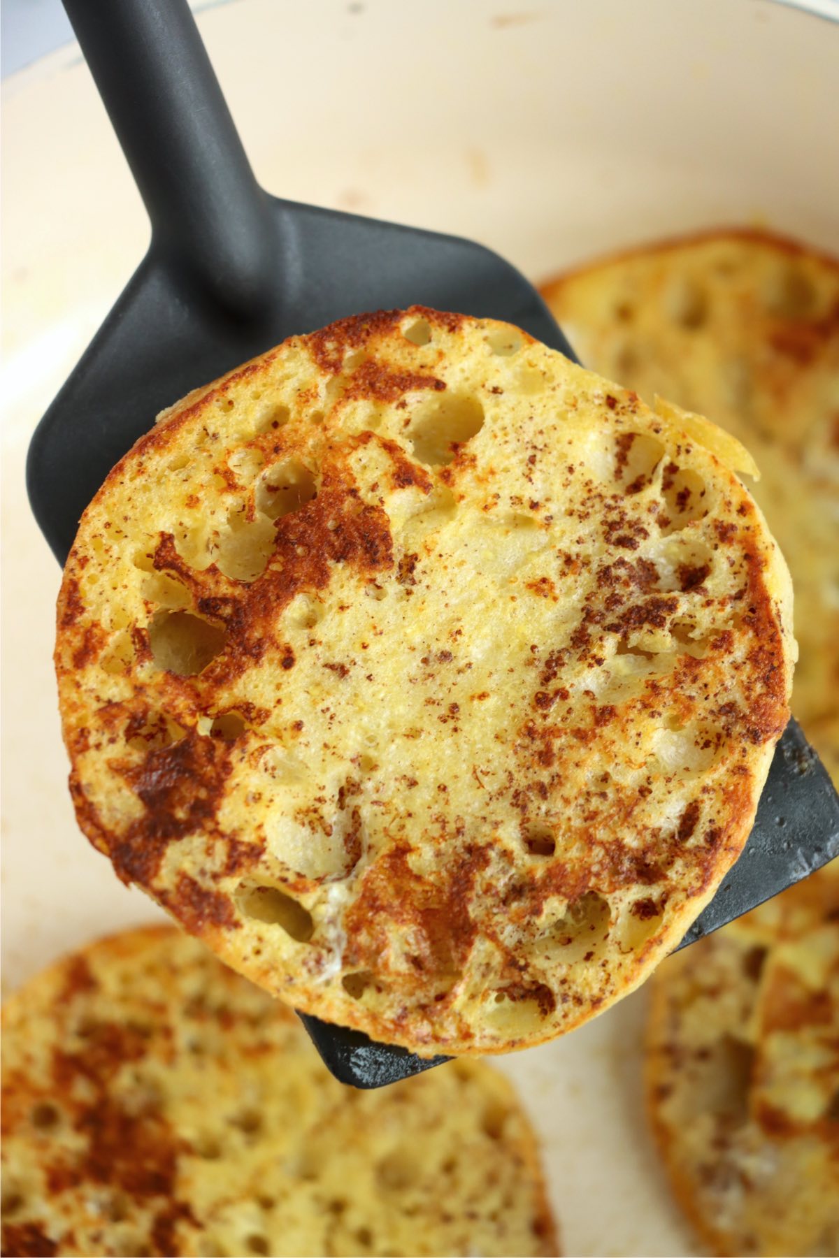 Cook your English muffin French toast over medium heat to get the best texture and browned exterior without burning them.