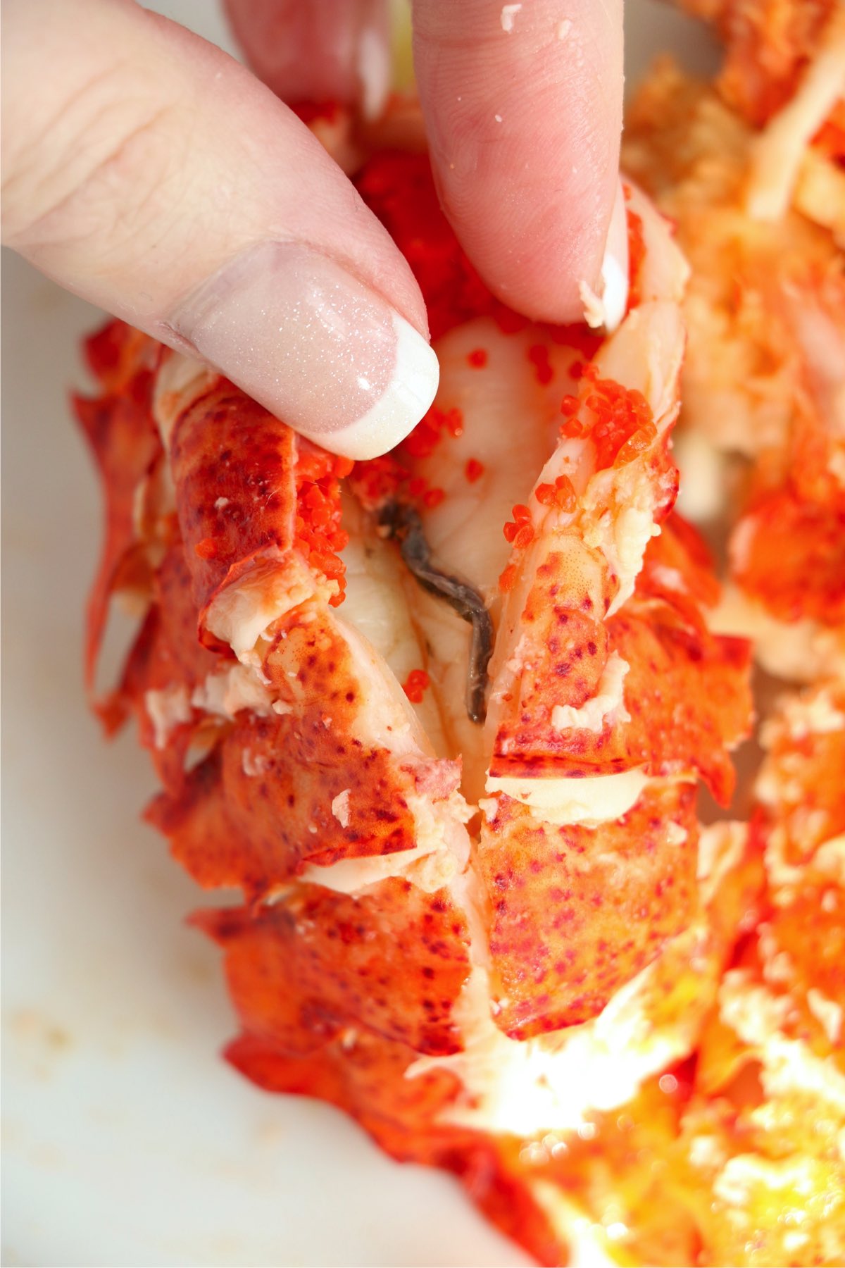 - When deveining the lobster tail, remember that you don't have to cut too deeply to get to the vein.