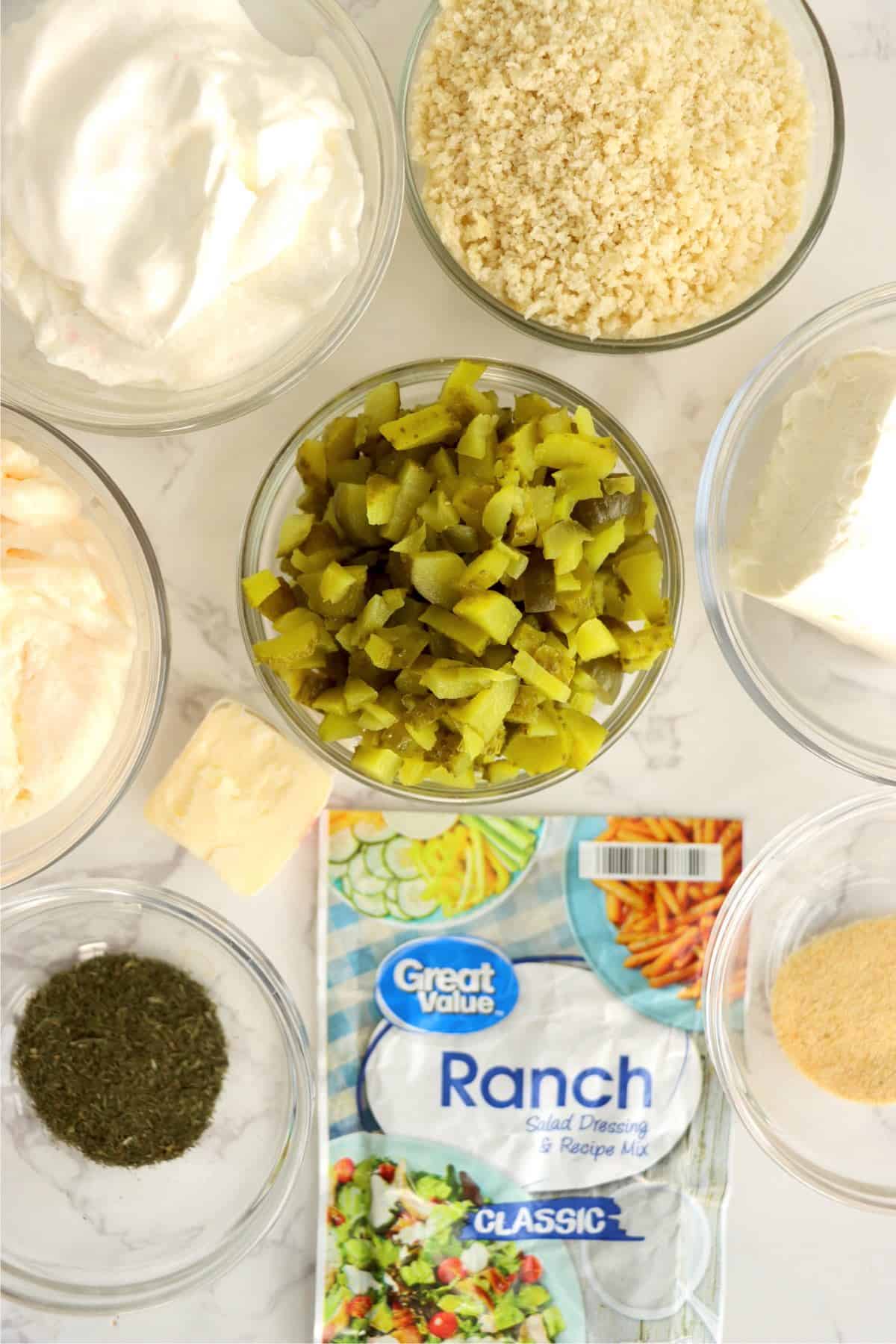 - The toasted panko breadcrumbs give the dip its signature fried pickle flavor.