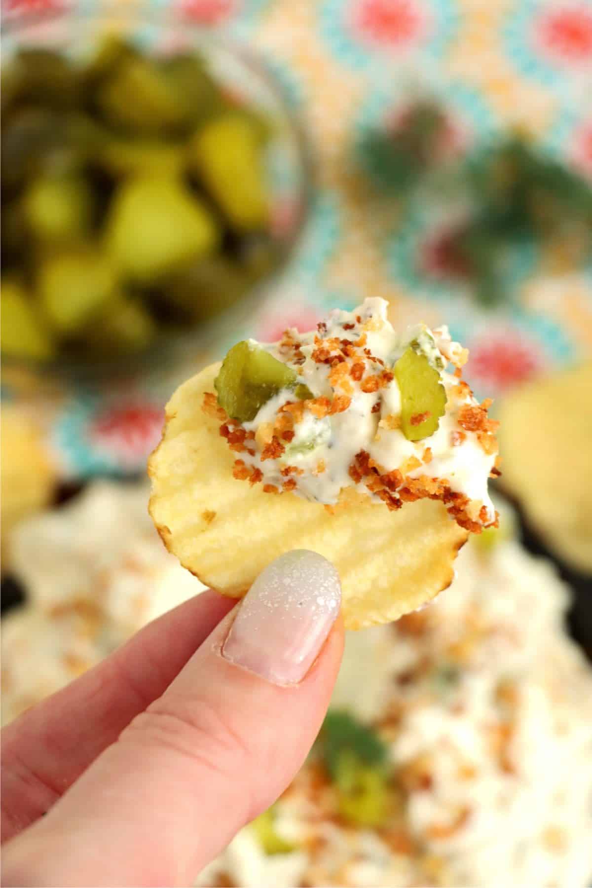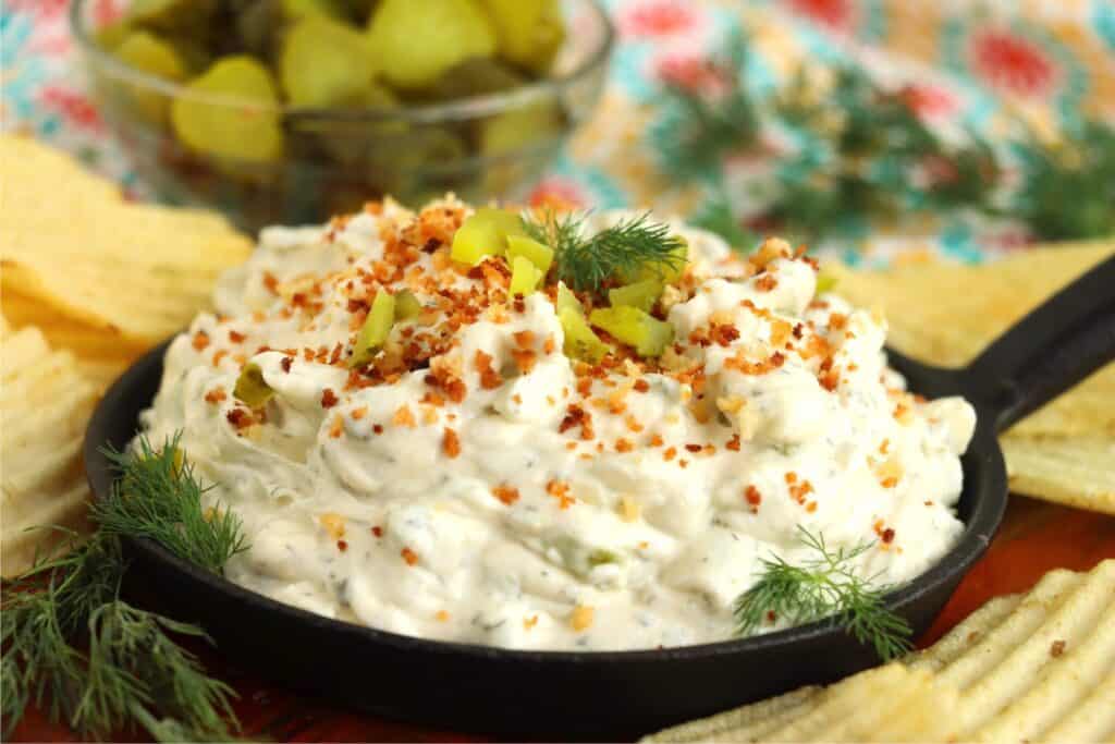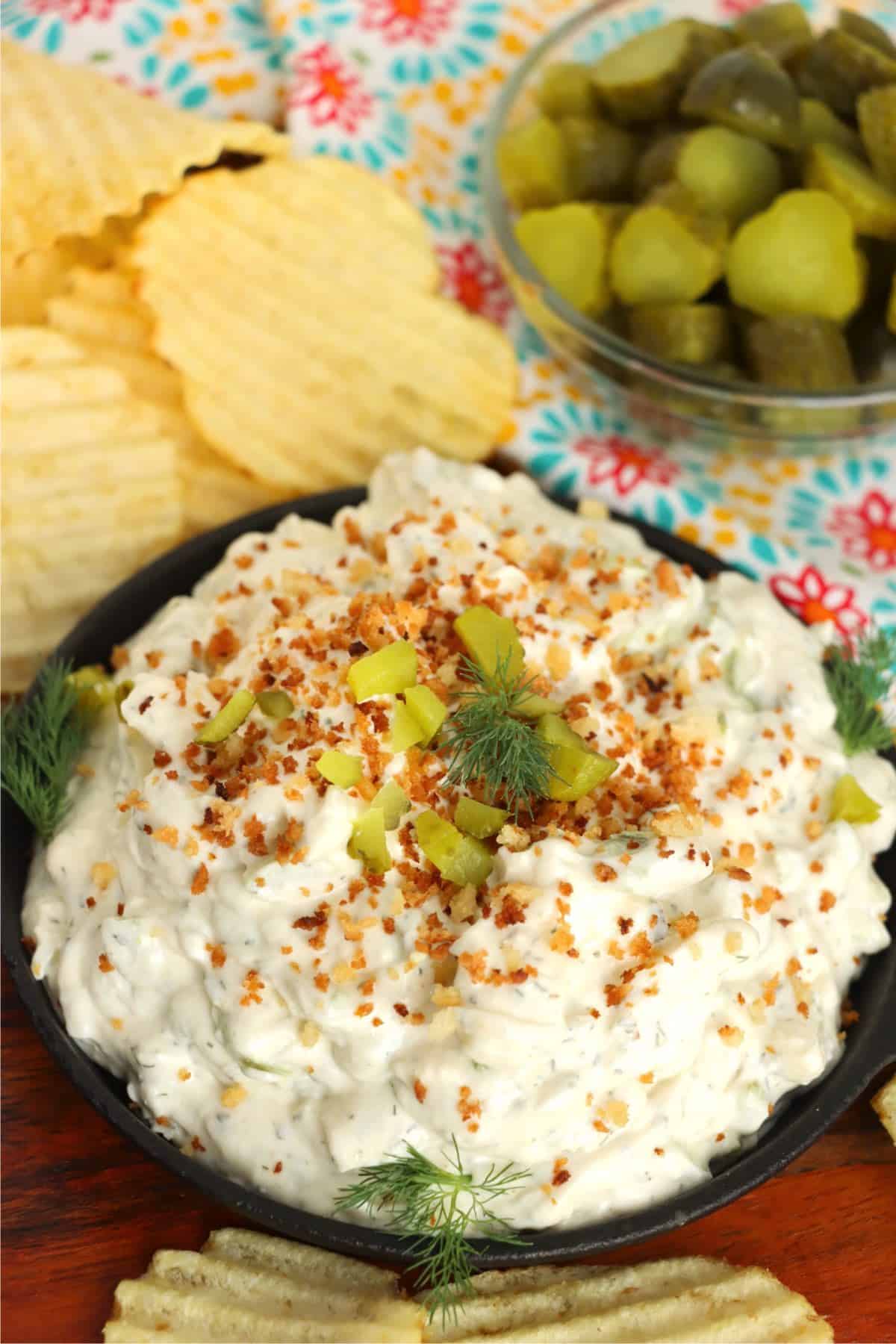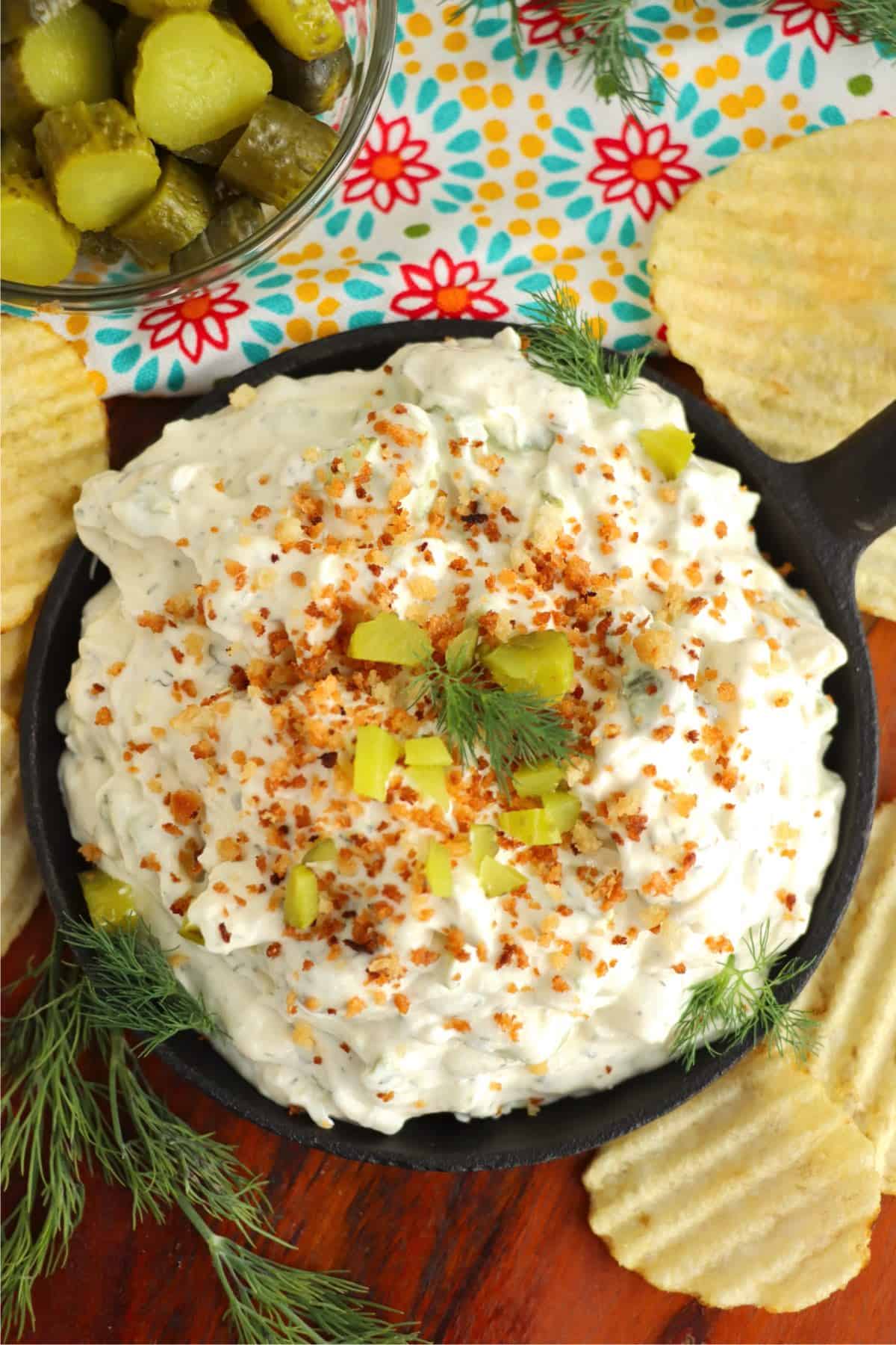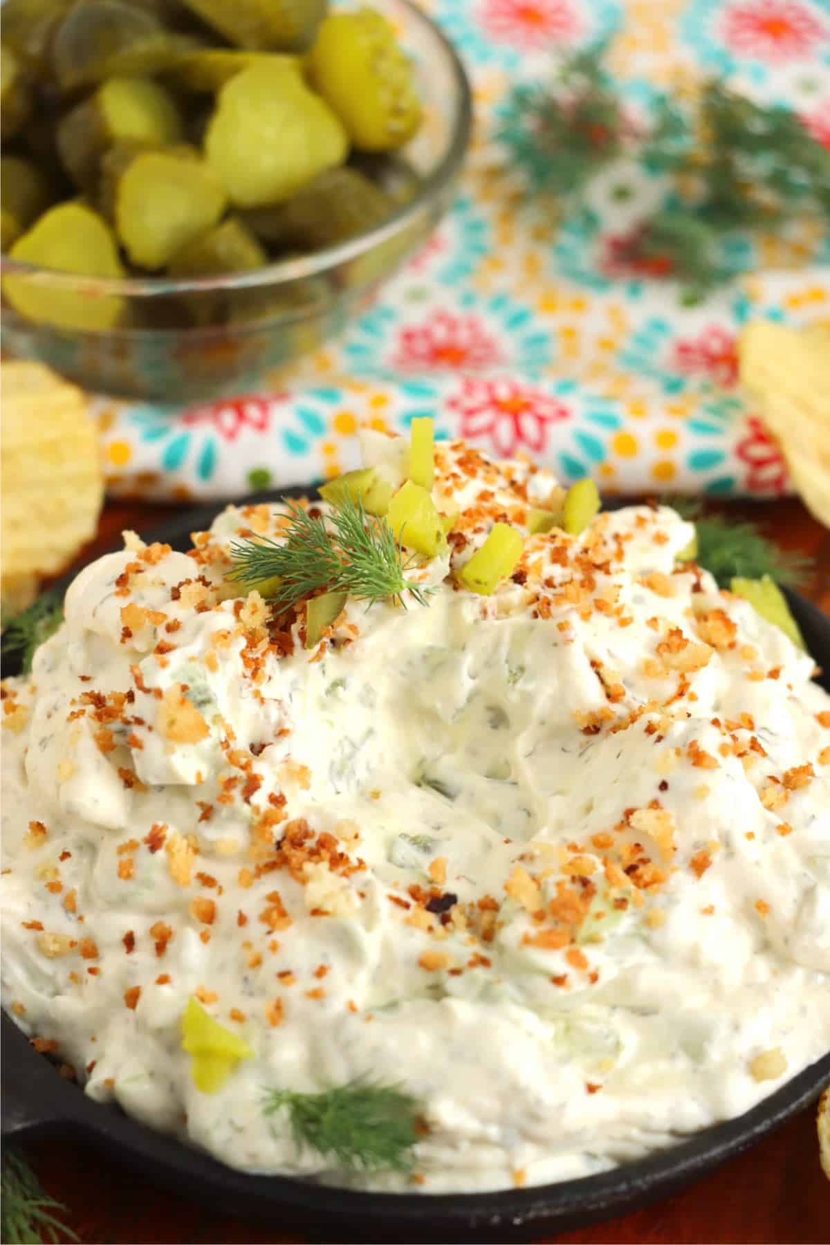 If you love fried pickles and ranch dressing, then I have an amazing dip for you. This extra creamy dip is made with a base of mayo, cream cheese, and sour cream and full of delicious fried pickle flavor. It's a great dip for any occasion.