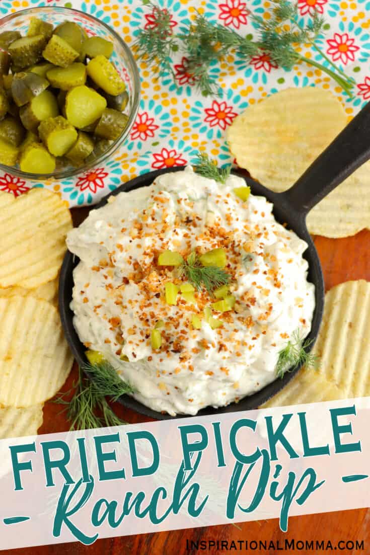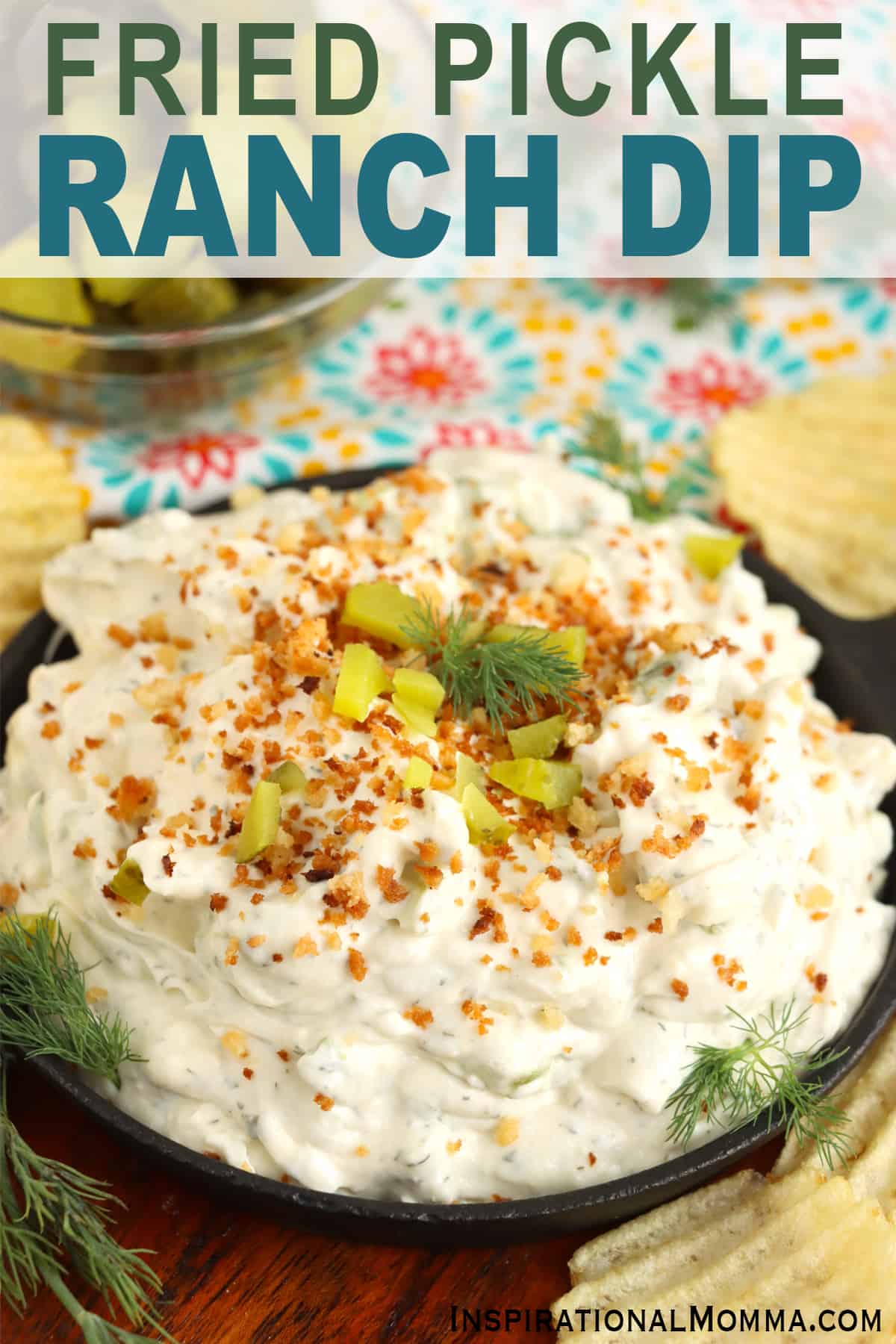 This creamy fried pickle and ranch dip is loaded with dill pickles, ranch seasoning, and toasted panko bread crumbs to create a dip chock full of the flavor of fried pickles and the zesty kick of ranch dip!
