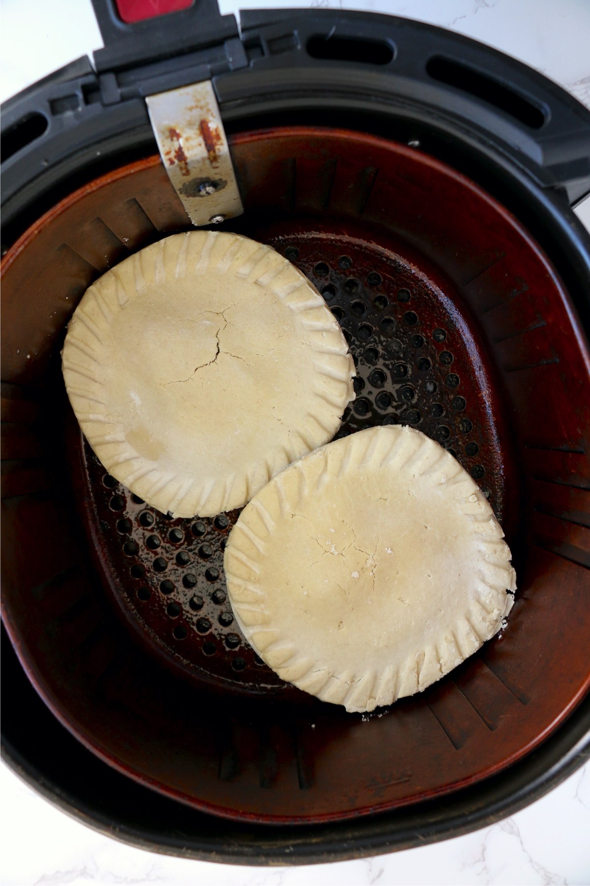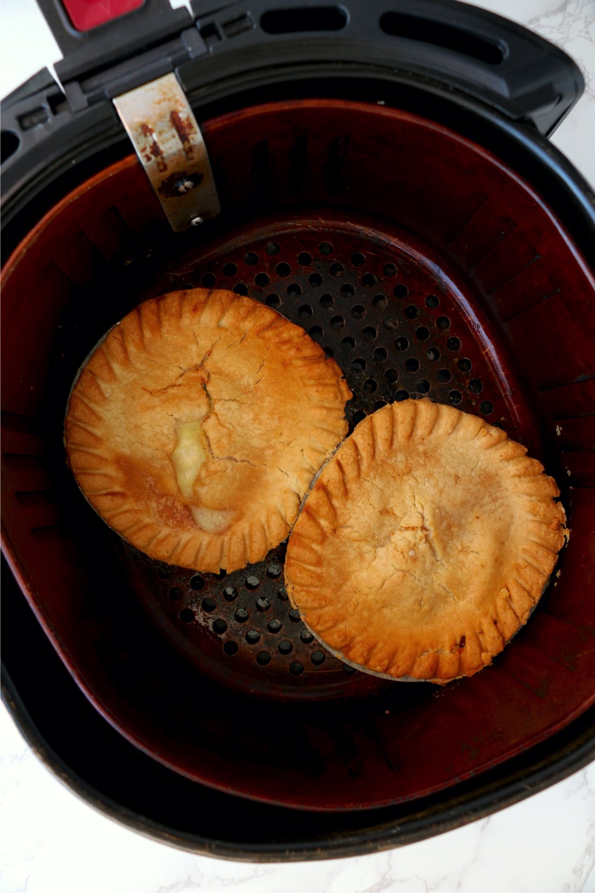 Step 2: Air fry at 350ºF for 25 minutes or until pot pies are heated through and lightly browned on top.