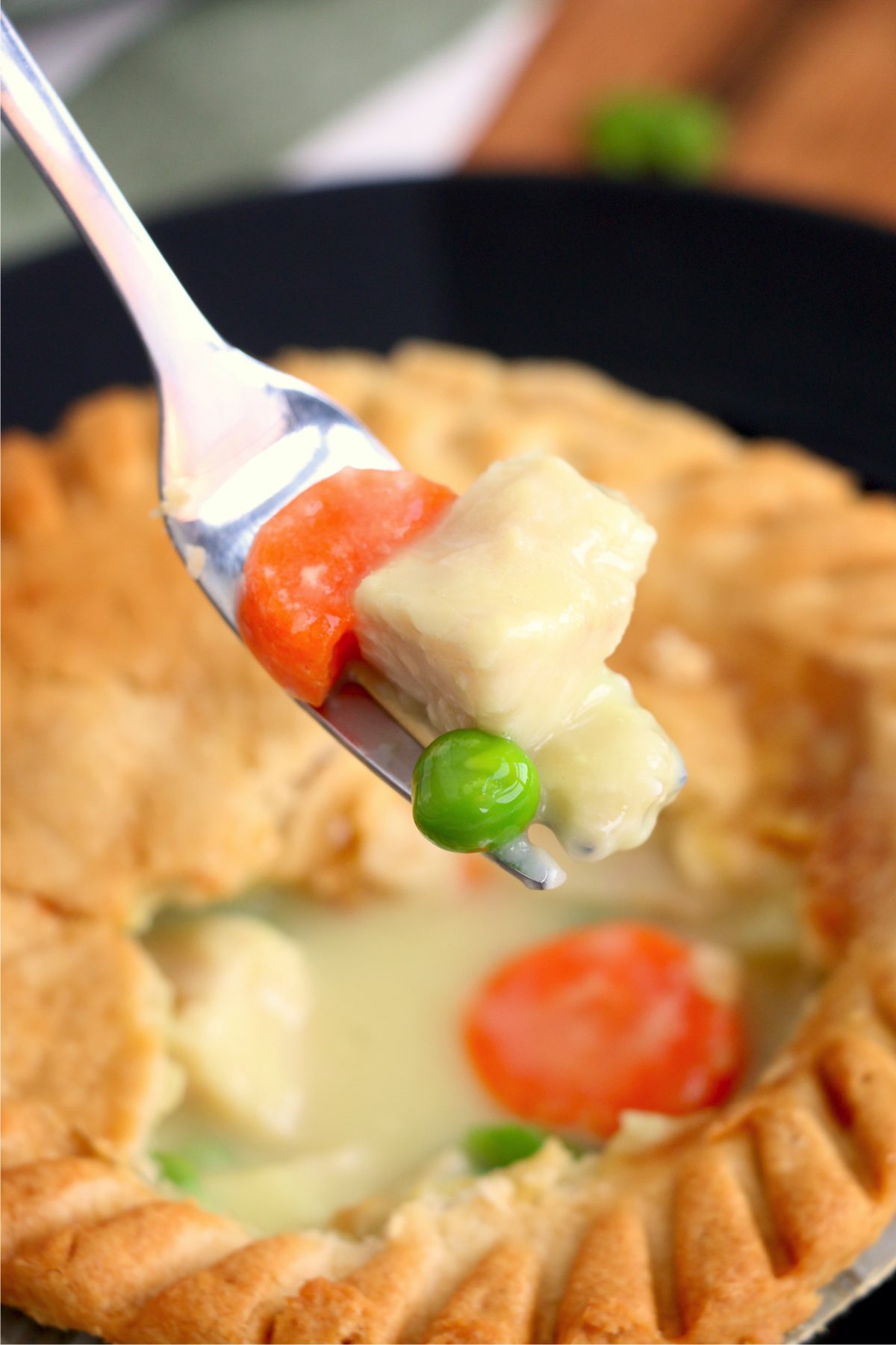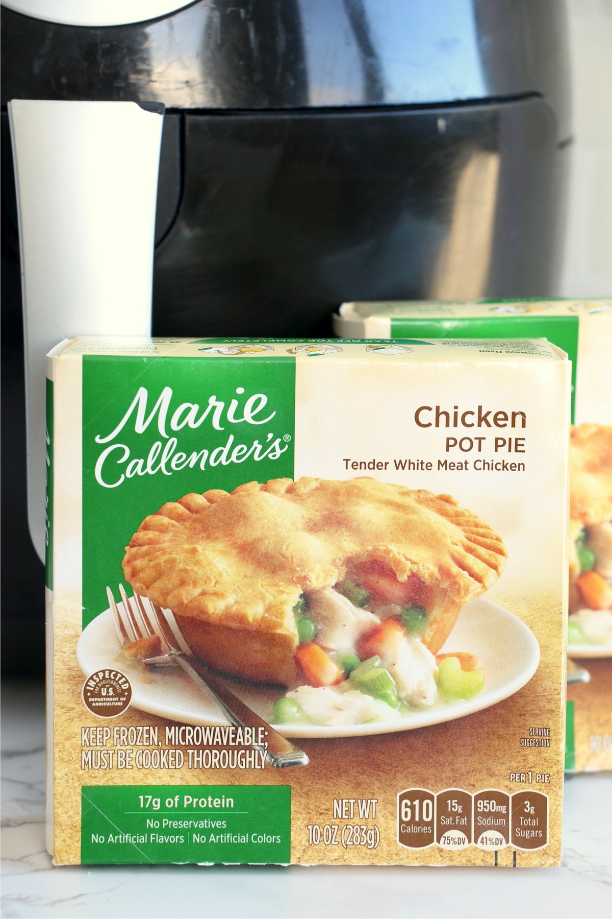 Golden flaky crust. A creamy filling full of chicken and vegetables. It's all here, and it's all ready in minutes thanks to using frozen pot pie and the air fryer.