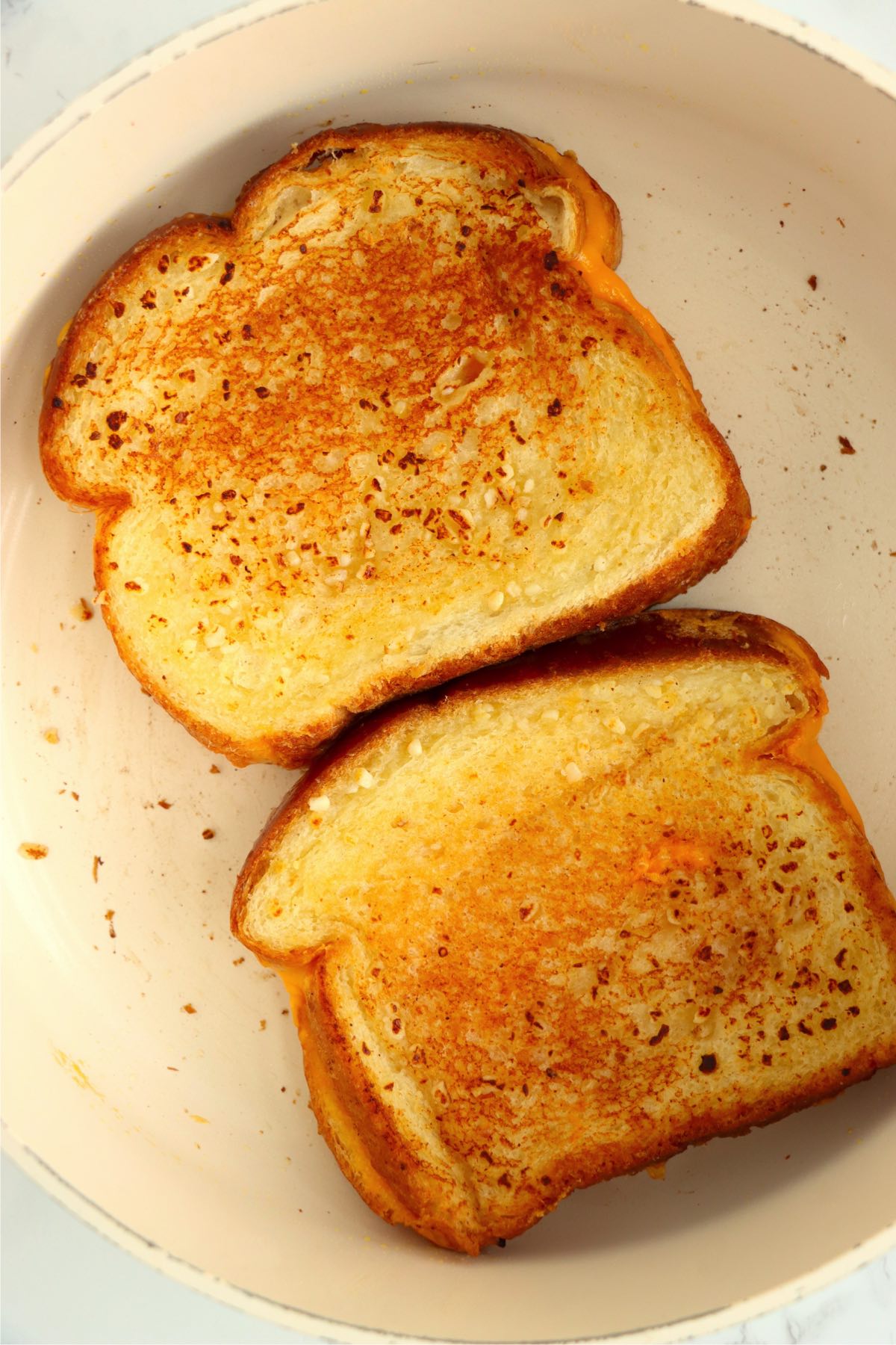 - Flip sandwiches and continue toasting for 4-5 minutes or until the other piece of bread is a golden brown.