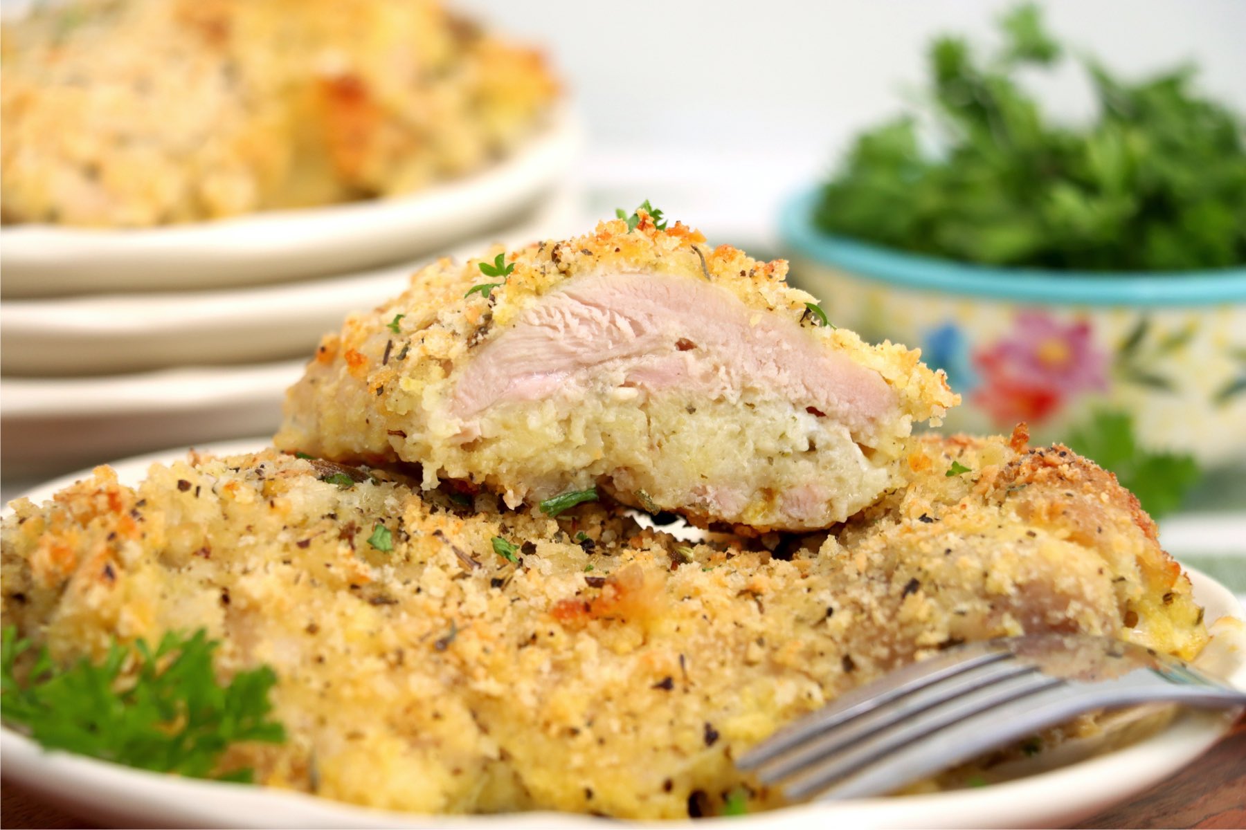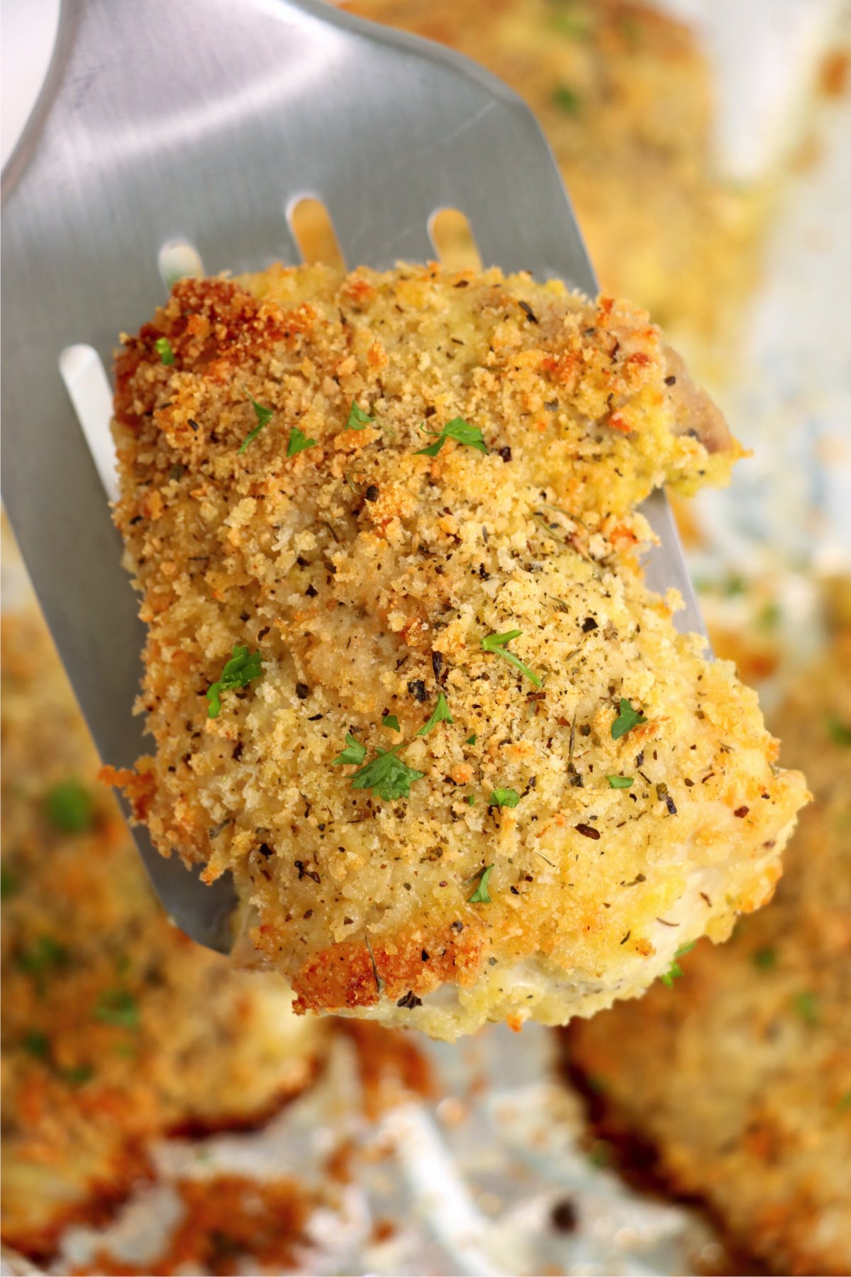 These garlic parmesan chicken thighs are delicious, healthy, and always a crowd-pleaser. Tender, juicy chicken thighs are coated with a zest breading, and then baked to golden brown perfection.