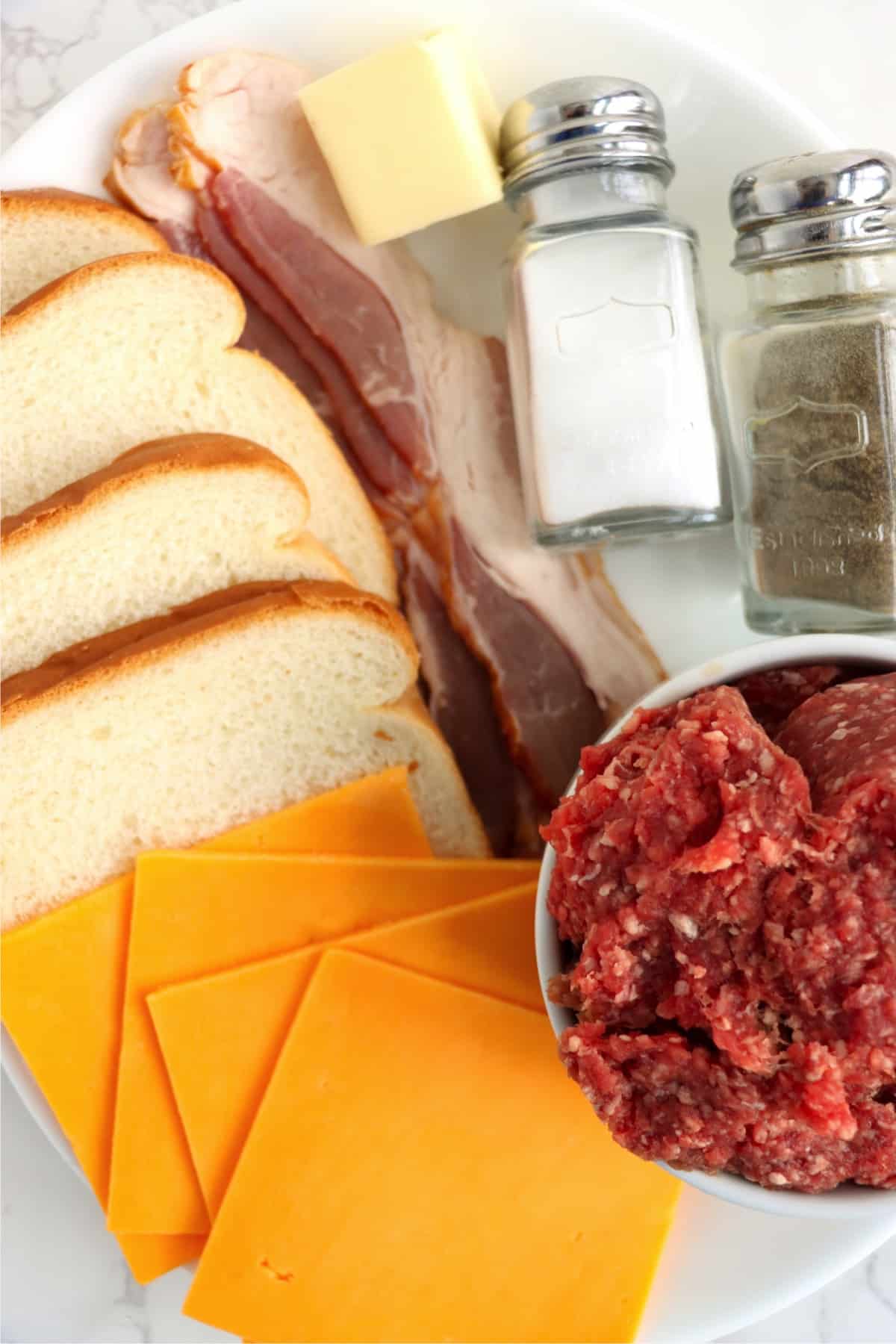 It only takes a few simple steps and a few minutes to make this delicious grilled cheese hamburger mashup. You'll be in and out of the kitchen in no time! The broad strokes are below. Check out the recipe card for the specific instructions.