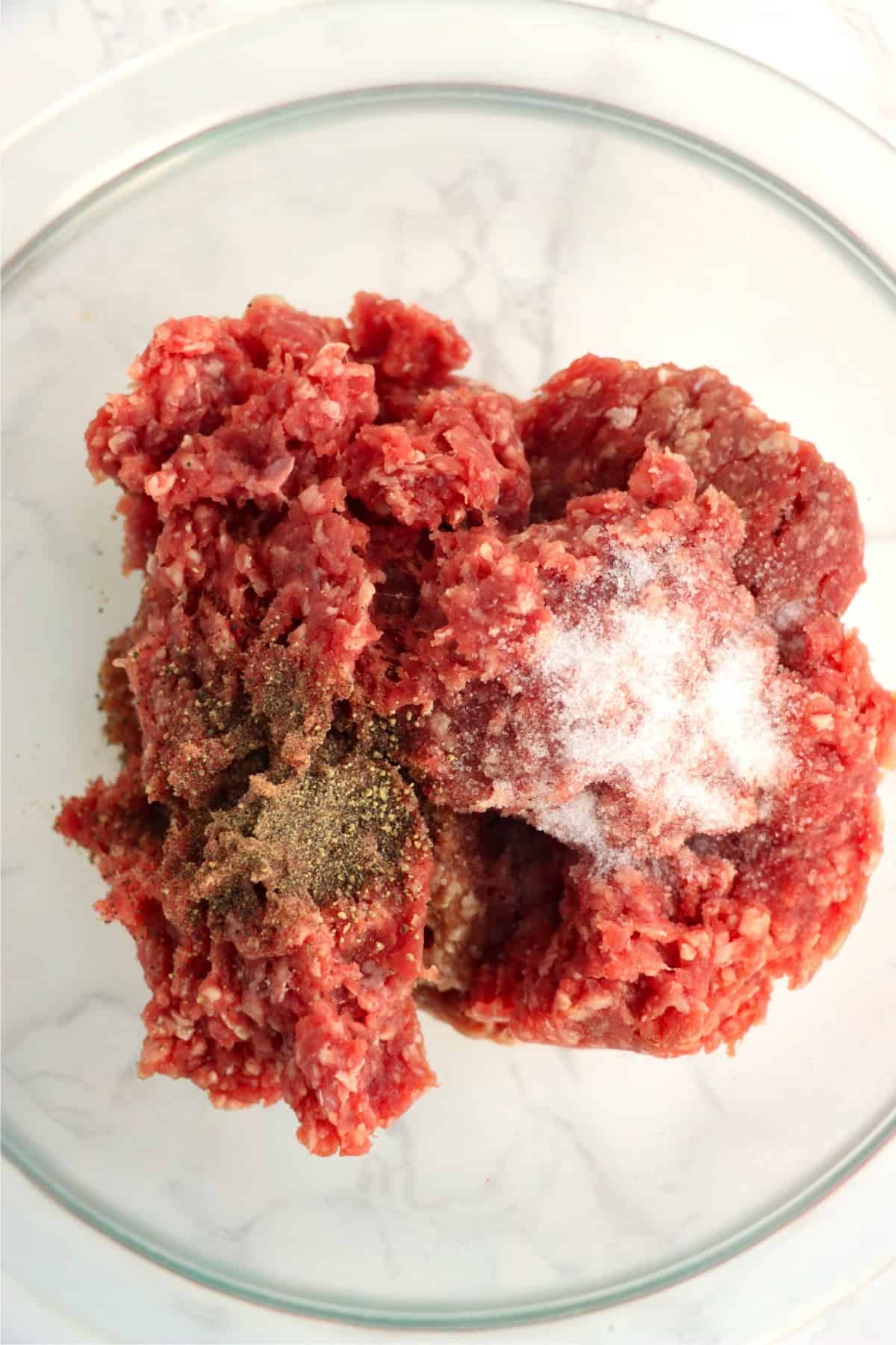 - Mix ground beef, salt, and pepper together. Split in half and form two patties similar to the shape of your bread.