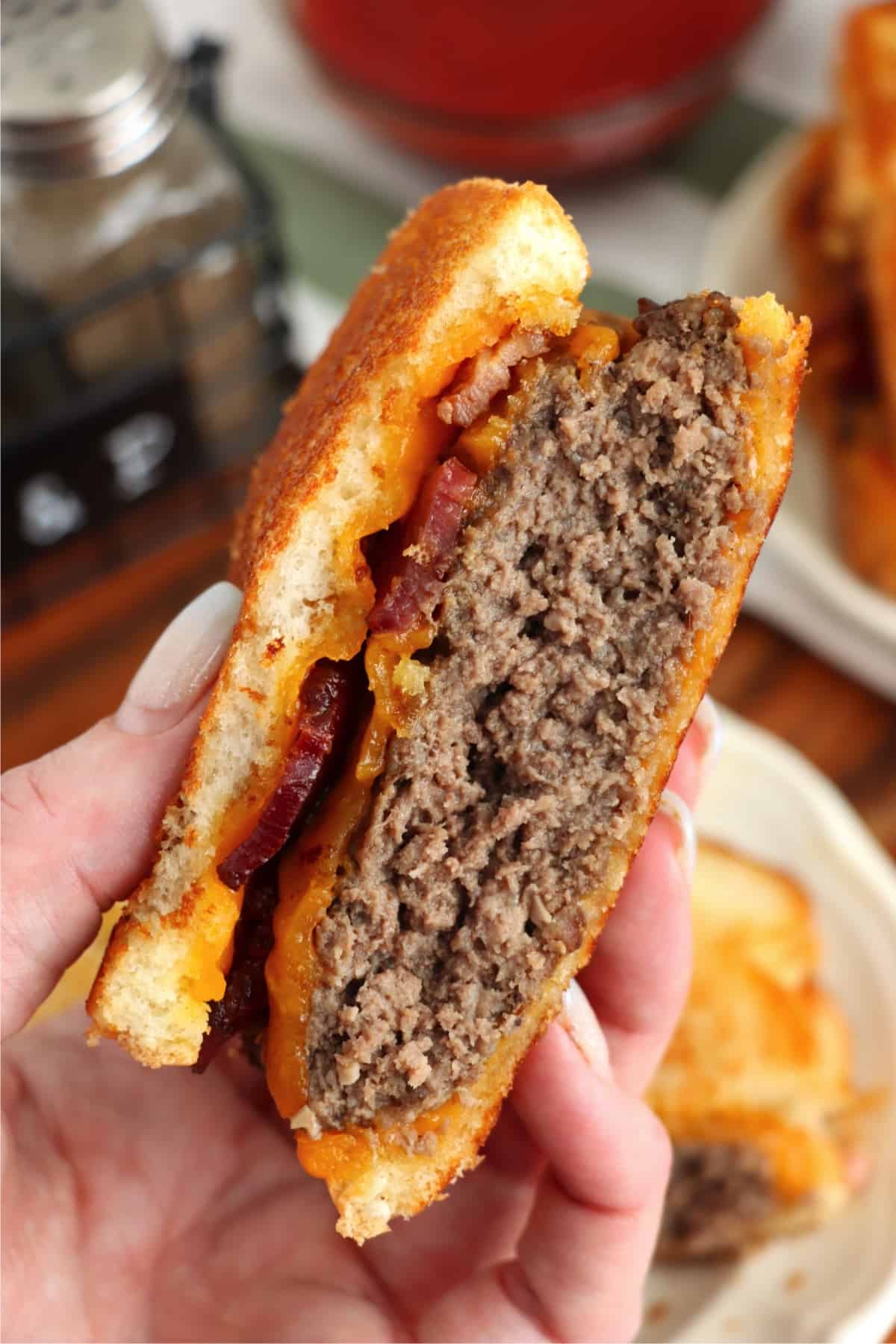If you love grilled cheese sandwiches and bacon cheeseburgers, then you're going to adore this cheesy, beefy mashup. I love serving these up for gameday, movie nights, and other special occasions because they combine two of my family's favorite comfort foods into one cozy blanket of flavor.