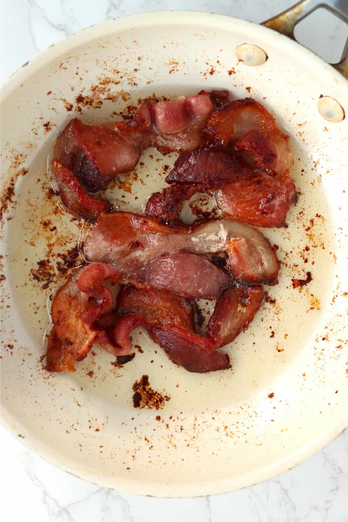 Start the bacon in a cold pan. Adding bacon to a hot pan overcooks the outer edges and undercooks the center, leading to burned areas on the outside and flabby pockets on the inside.