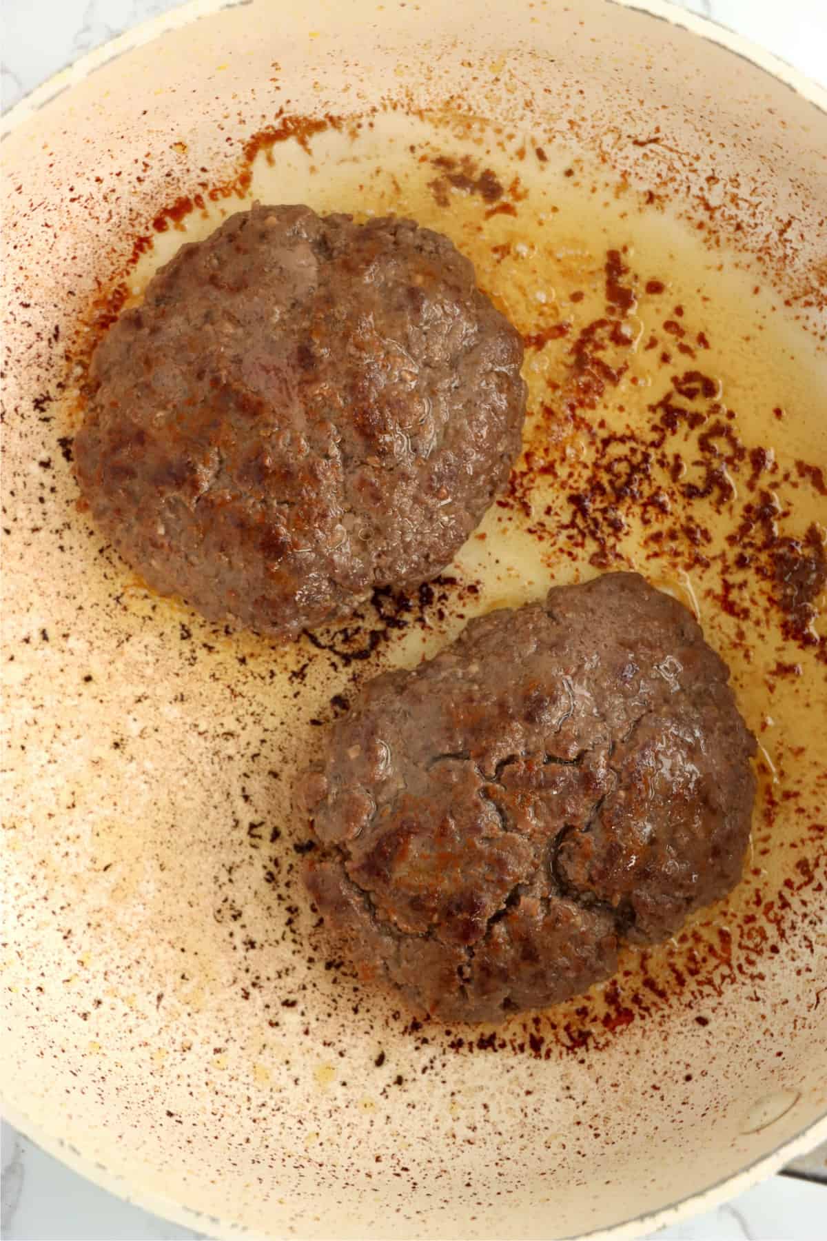 1: Combine the ground beef and seasonings and form into 2 patties.