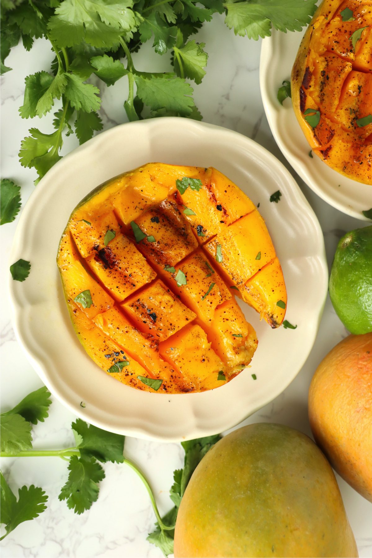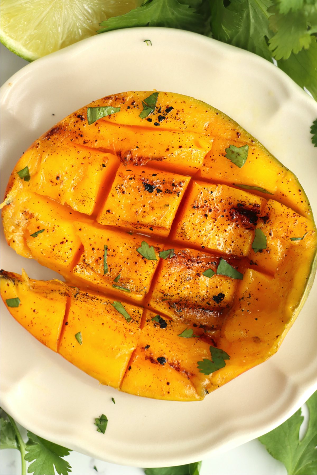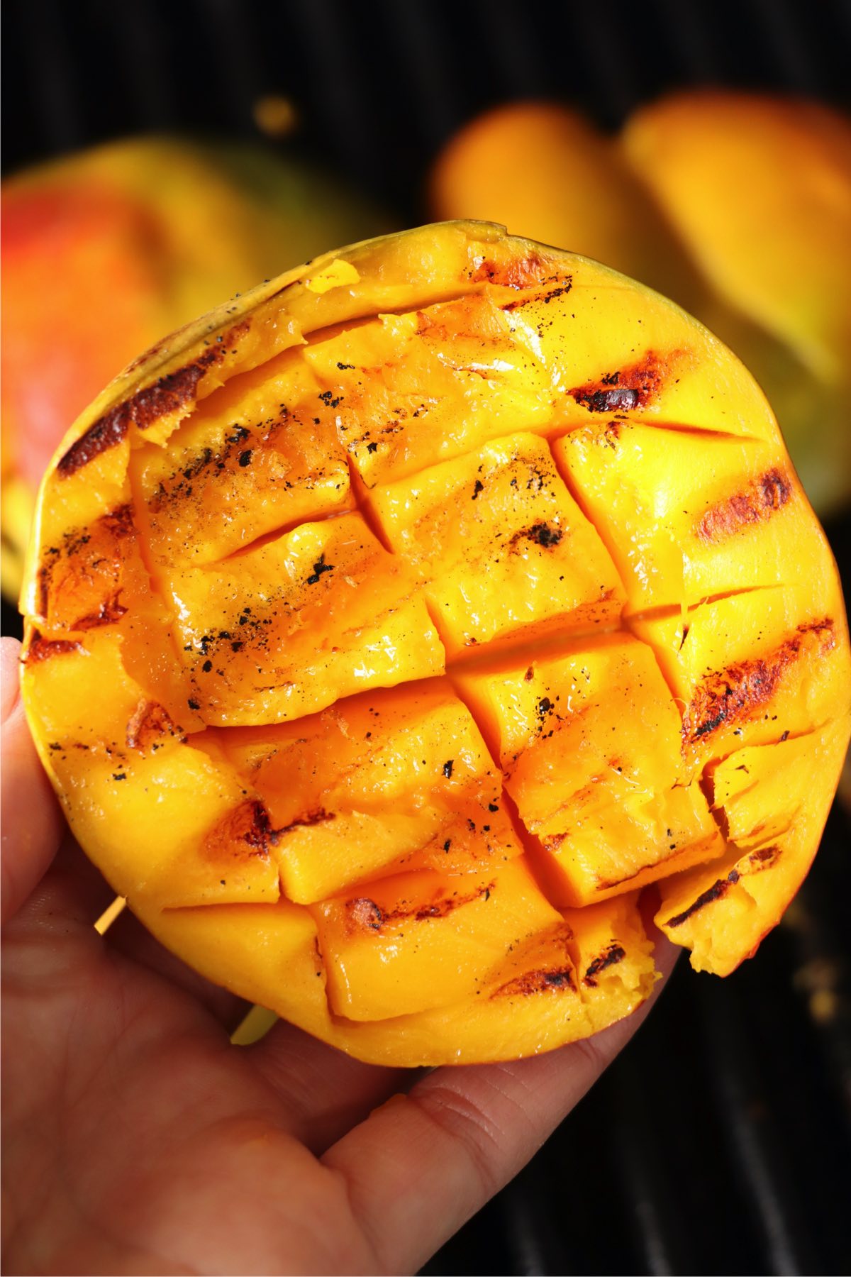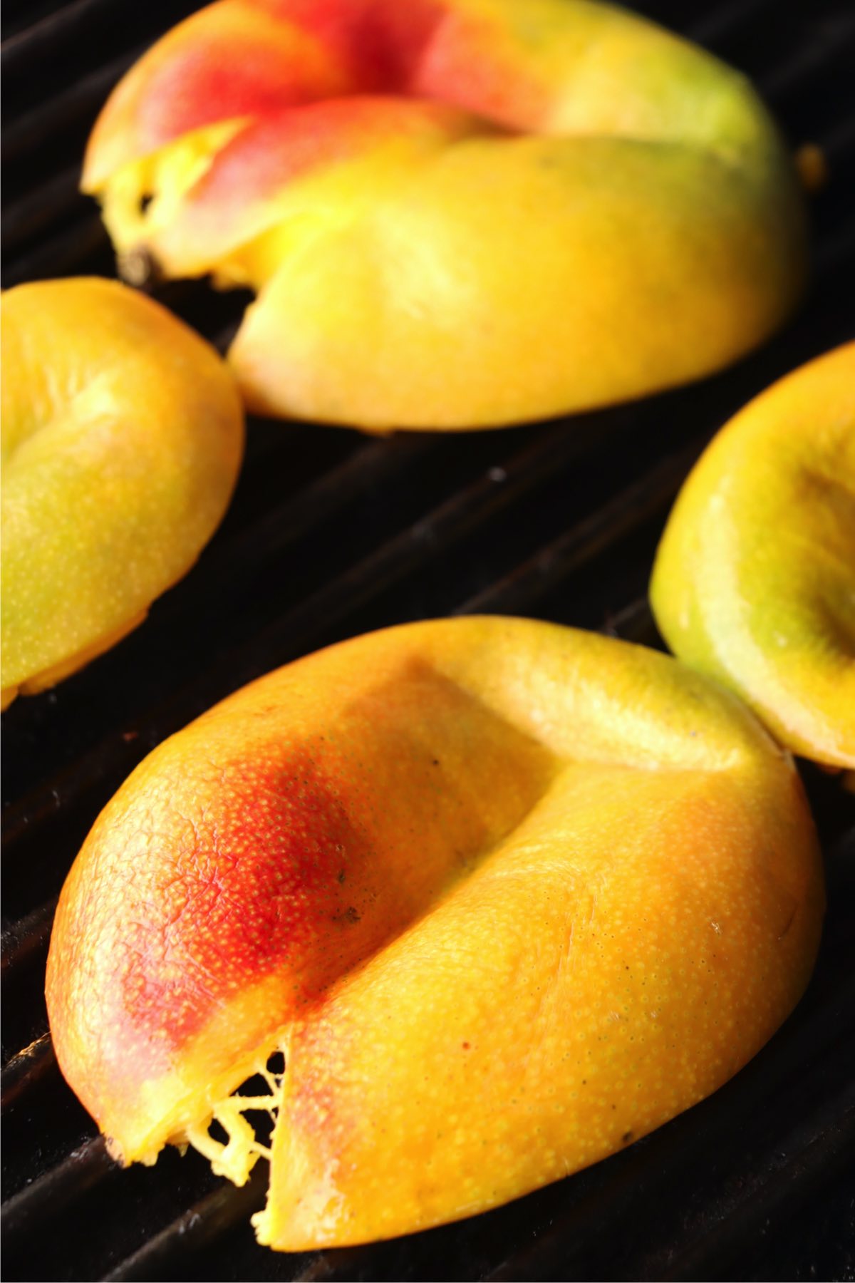 I love grilling fruits of all kinds. That caramelized exterior accentuates the natural sweetness so much. You can taste that especially well when you grill mangoes.
