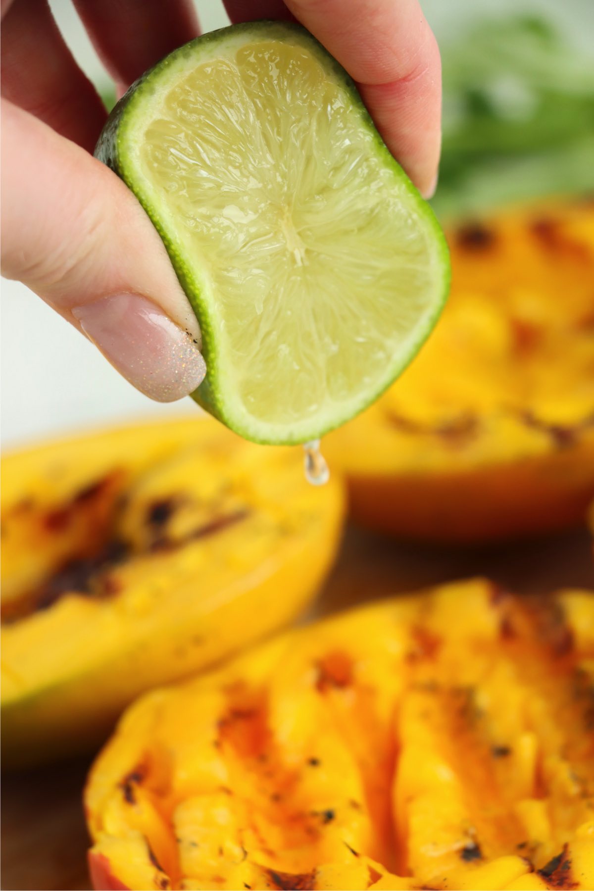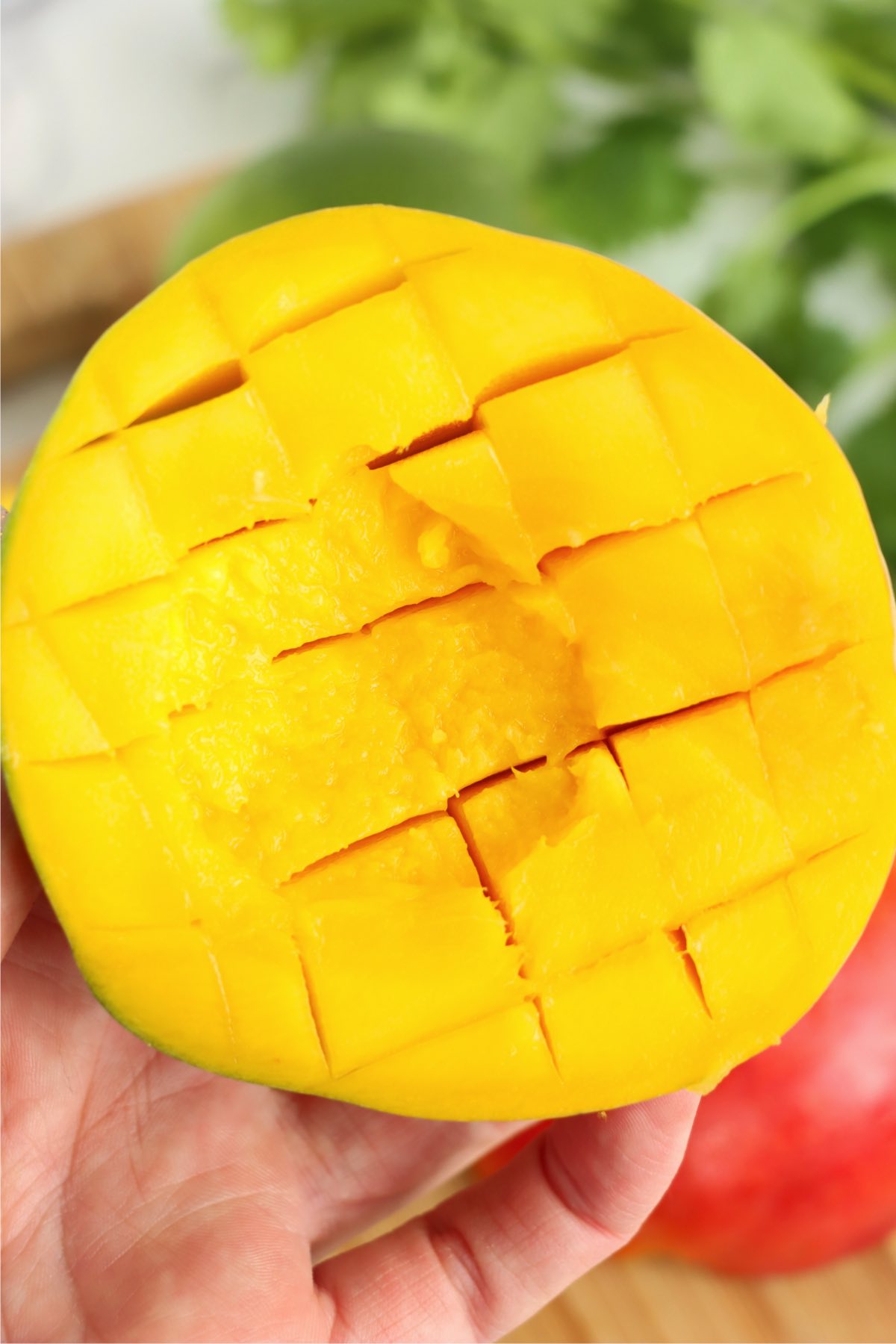 - Give the mango halves a squeeze after you've sliced them to expose the flesh for easier grilling.