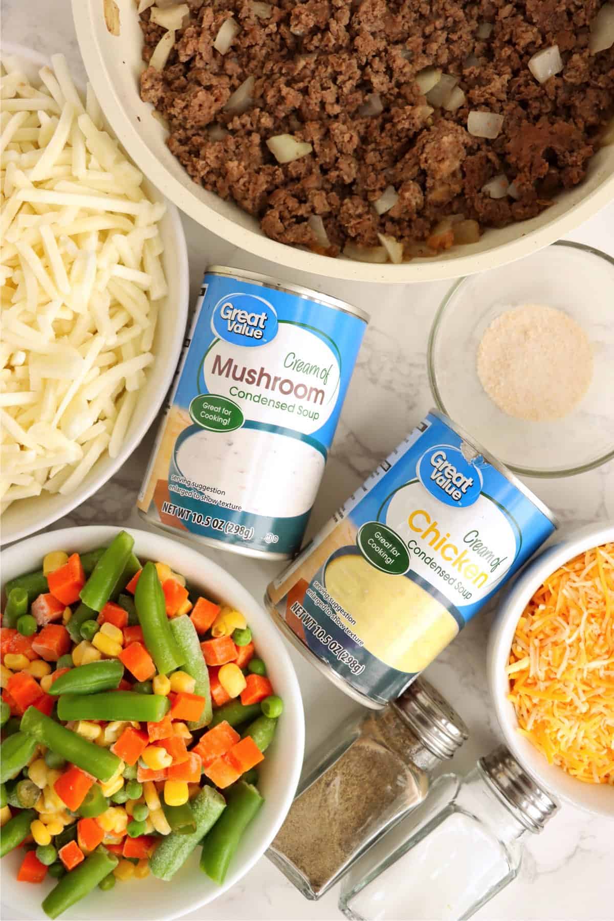 You'll only need a few simple ingredients that you can find in your kitchen or at your local grocery store. Like any good casserole, this dish only uses the basics!