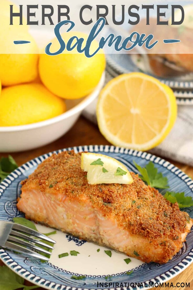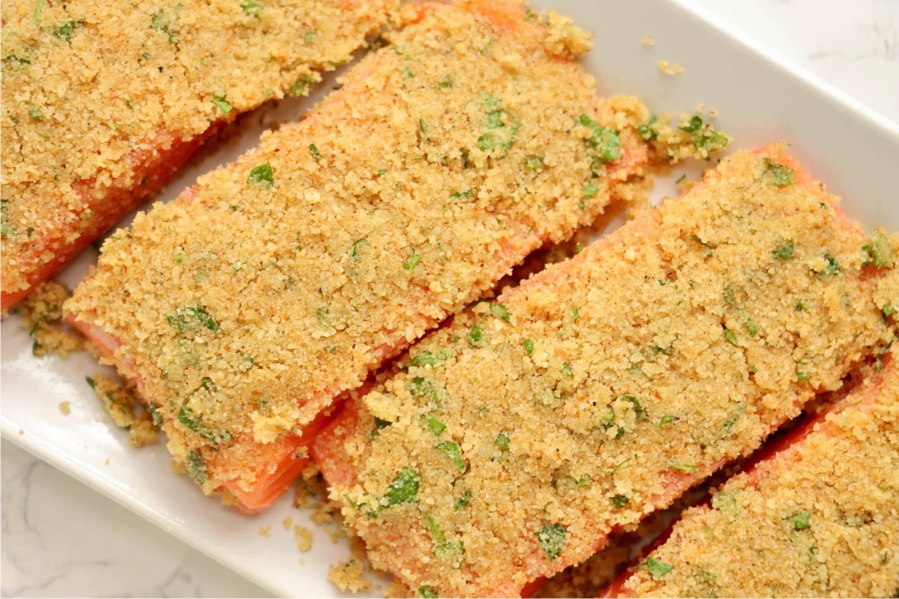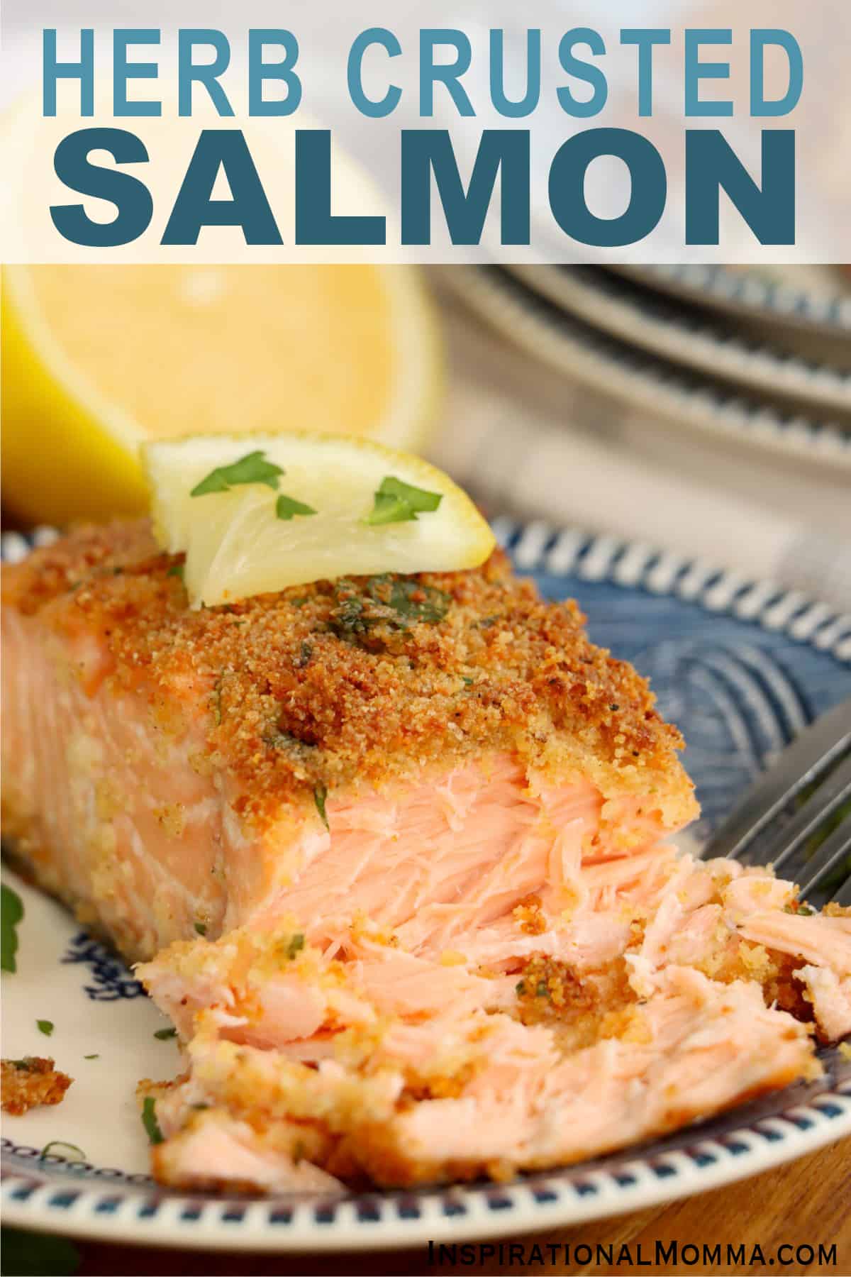 Herb crusted salmon is an easy, delicious, healthy dish everyone loves. Tender, flaky salmon is coated in an herbed, parmesan breadcrumb crust that delivers a lovely crunch without frying.