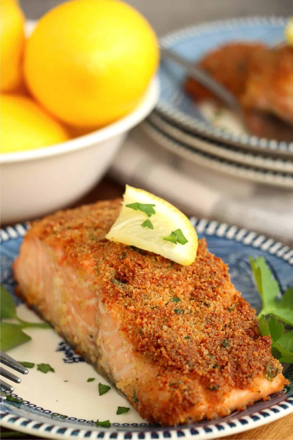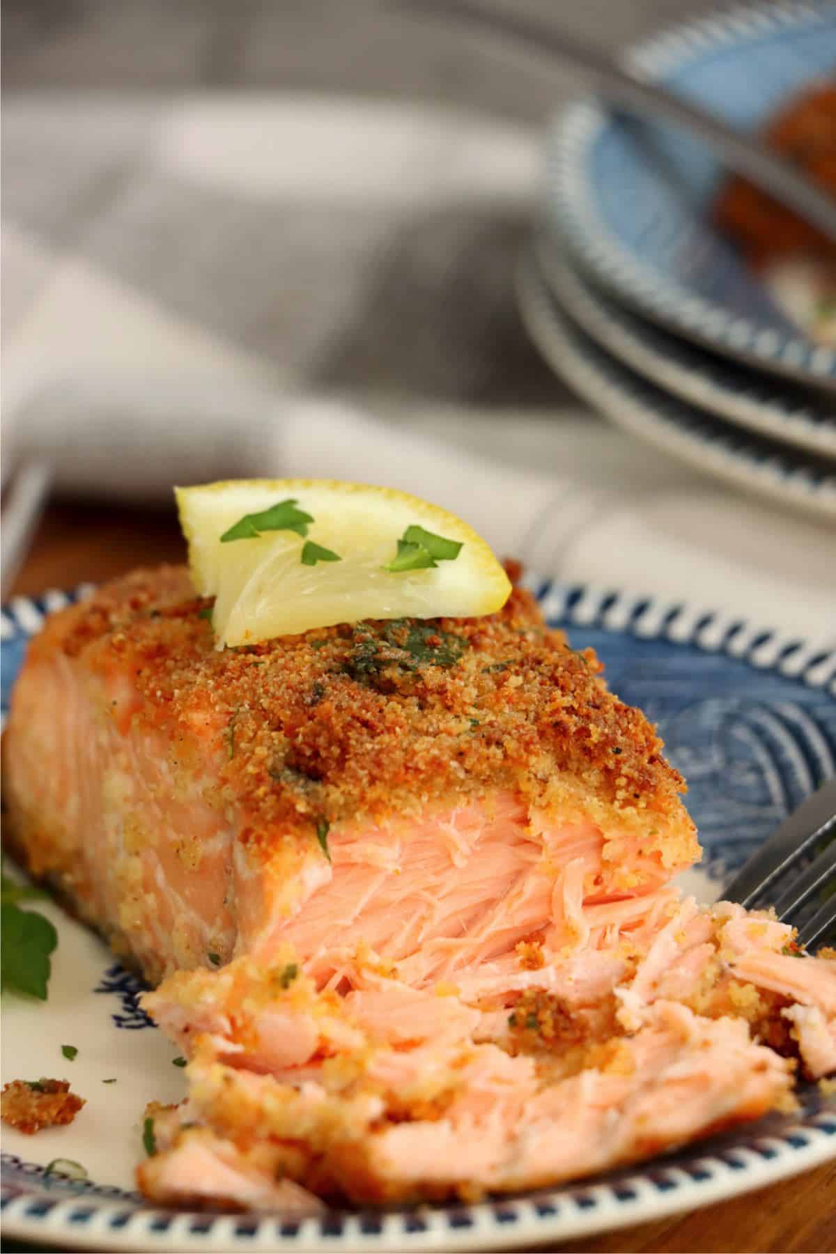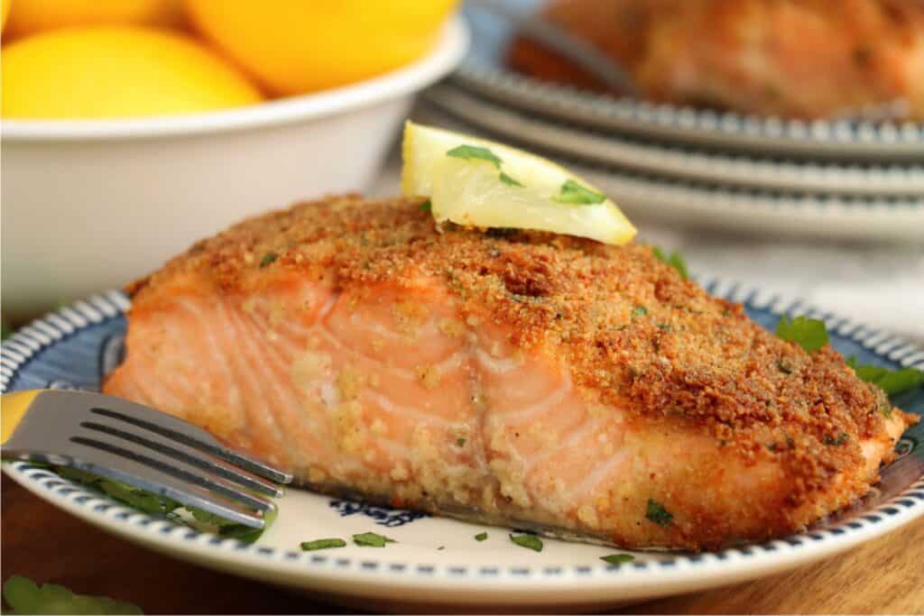 Herb crusted salmon is an easy, delicious, healthy dish everyone loves. Tender, flaky salmon is coated in an herbed, parmesan breadcrumb crust that delivers a lovely crunch without frying.