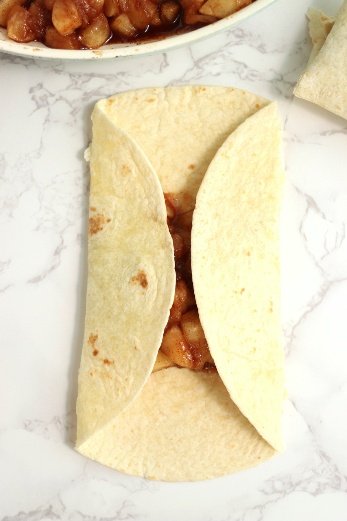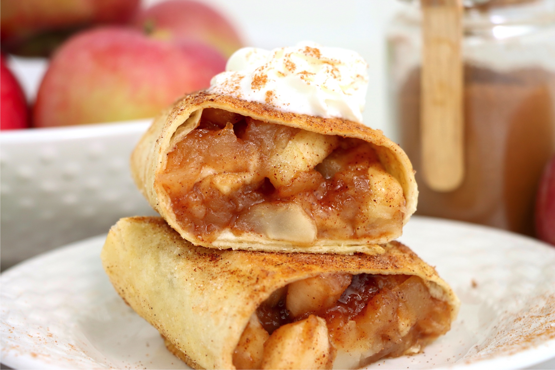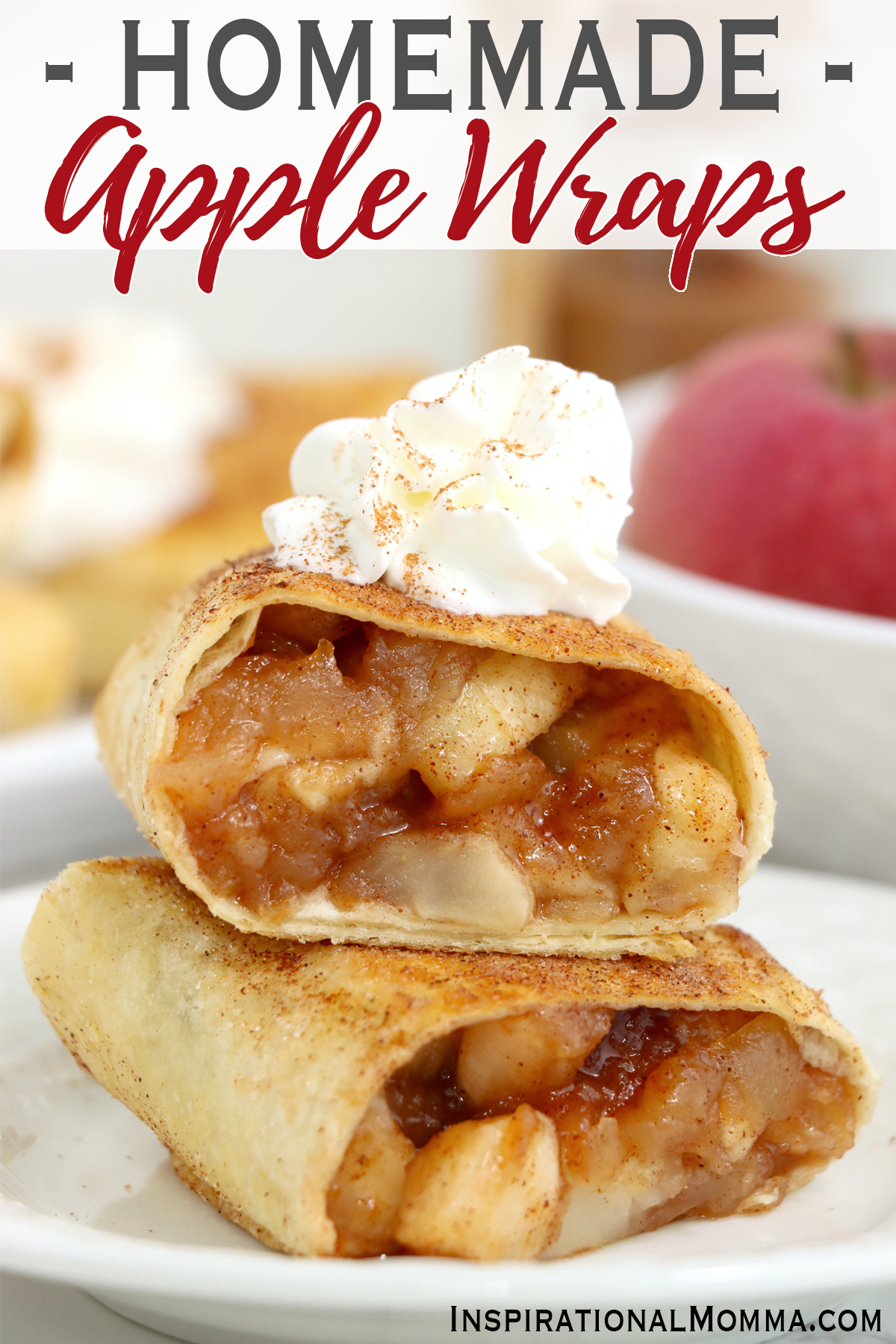 Homemade apple wraps are a fun twist on an old classic. Delicious, homemade apple pie filling is wrapped up in flour tortillas, then they're fried to golden, crispy perfection in a skillet. Yum!
