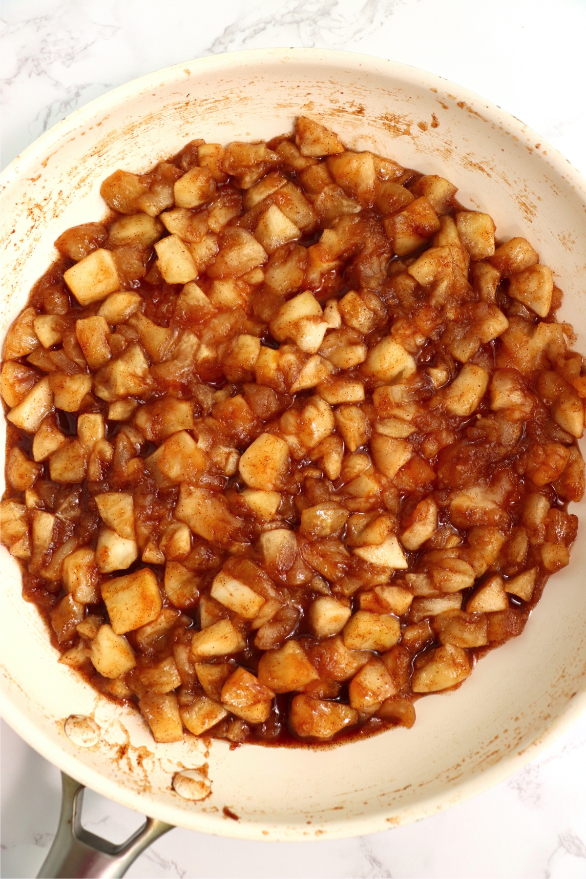 - Your apple filling will be watery at first. Just keep cooking it until thickened.