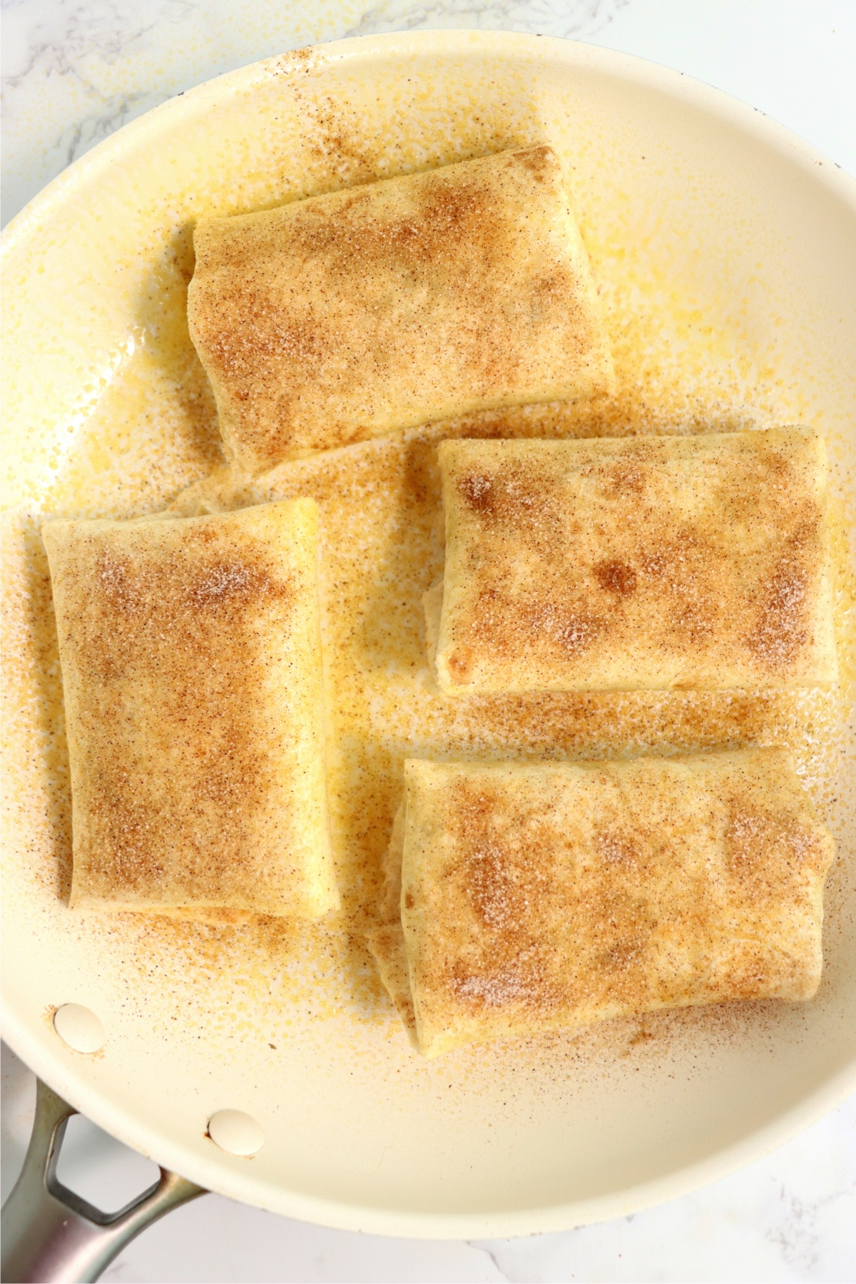 Be sure to cook your wraps on medium-low heat so you get a nice, golden brown finish without burning the wraps.