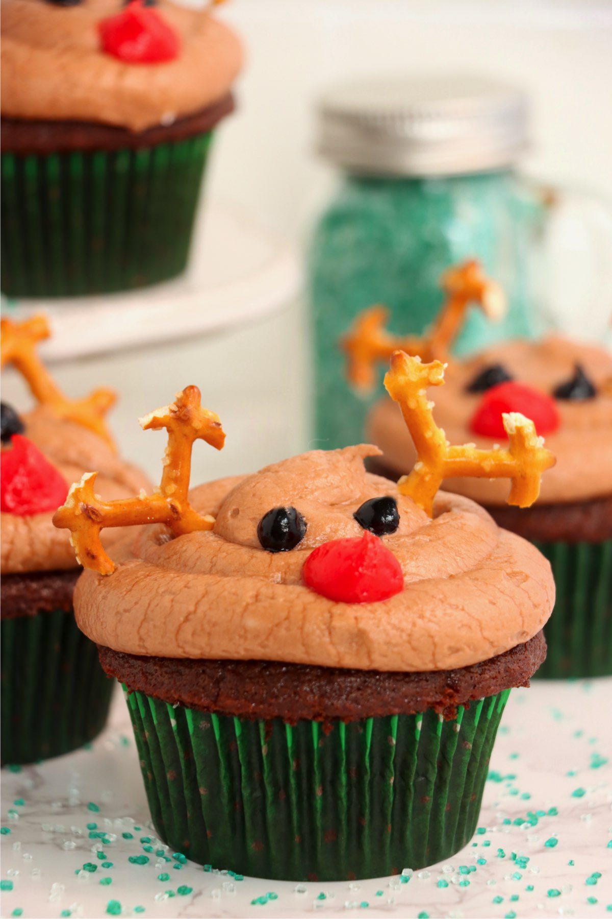 These chocolate reindeer cupcakes are as festive as they are delicious. They're also super easy to make and so much fun!