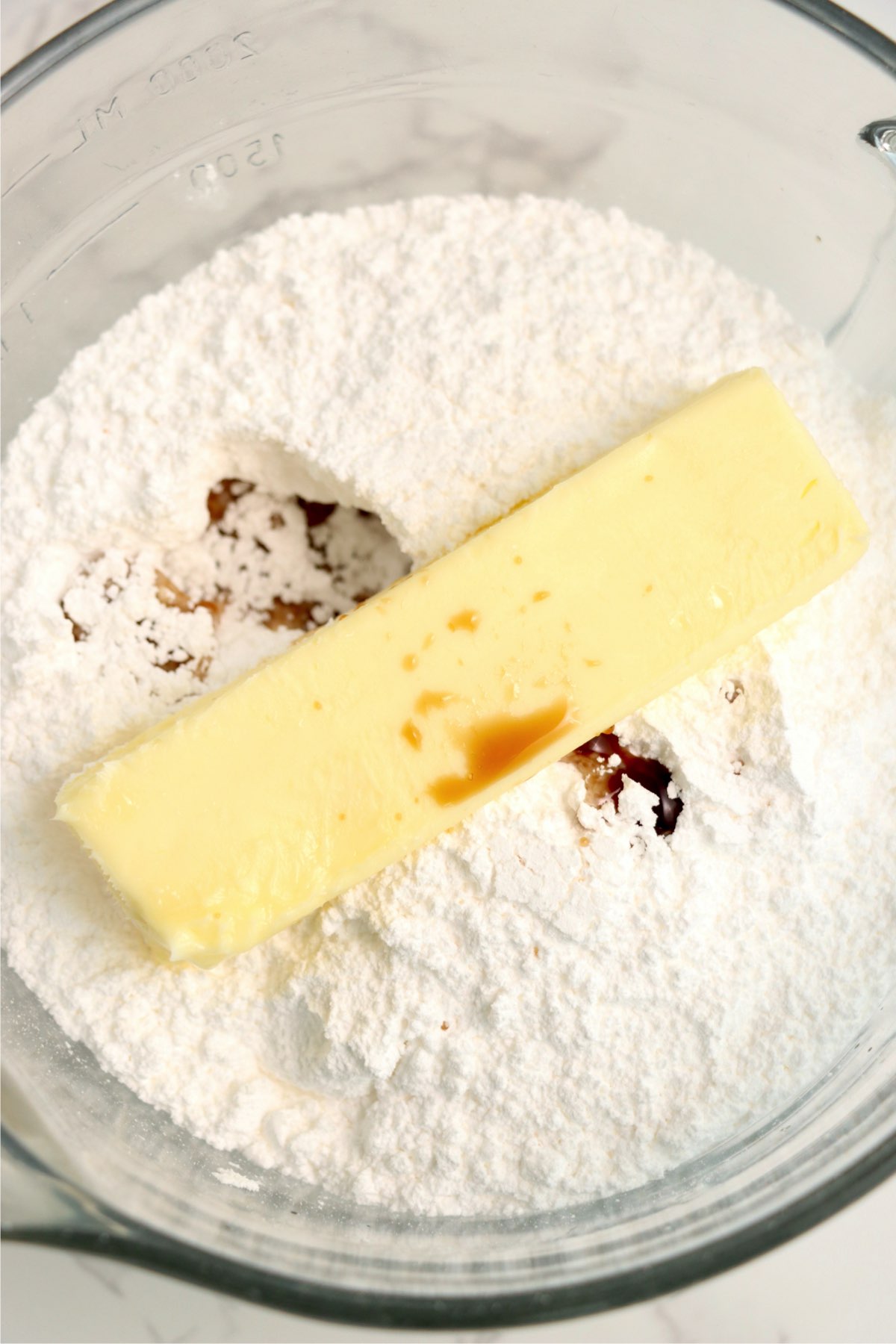 - To prepare frosting, in a medium mixing bowl, cream butter and powdered sugar together.