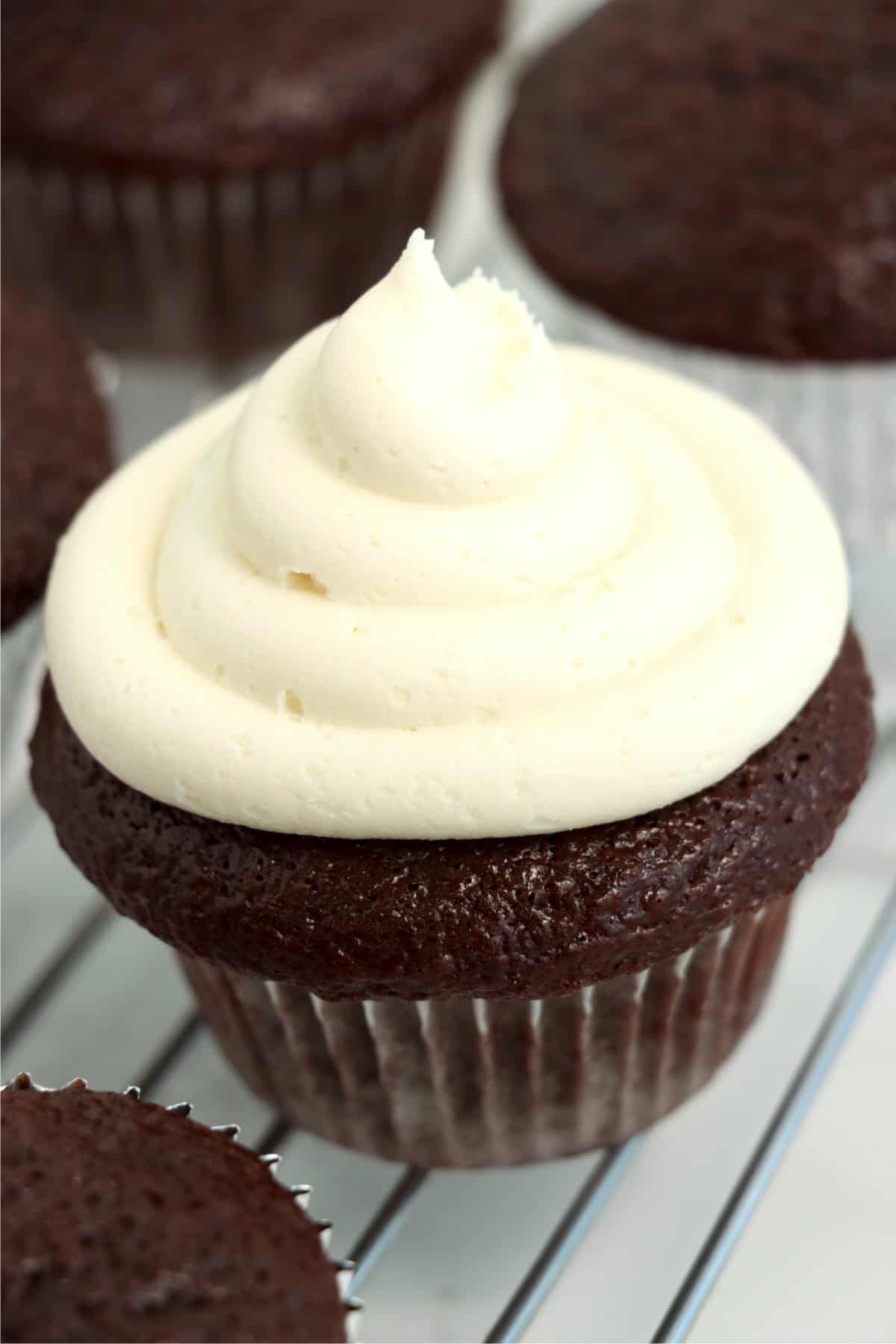 - Sweet buttercream frosting makes the perfect accompaniment to the chocolate cupcake.