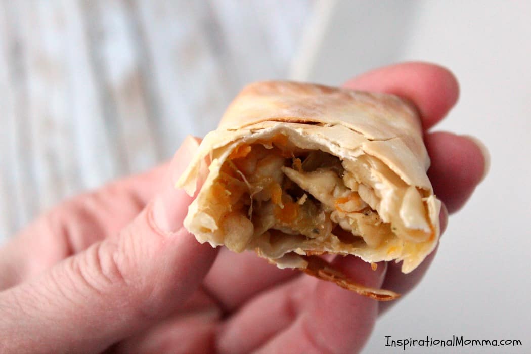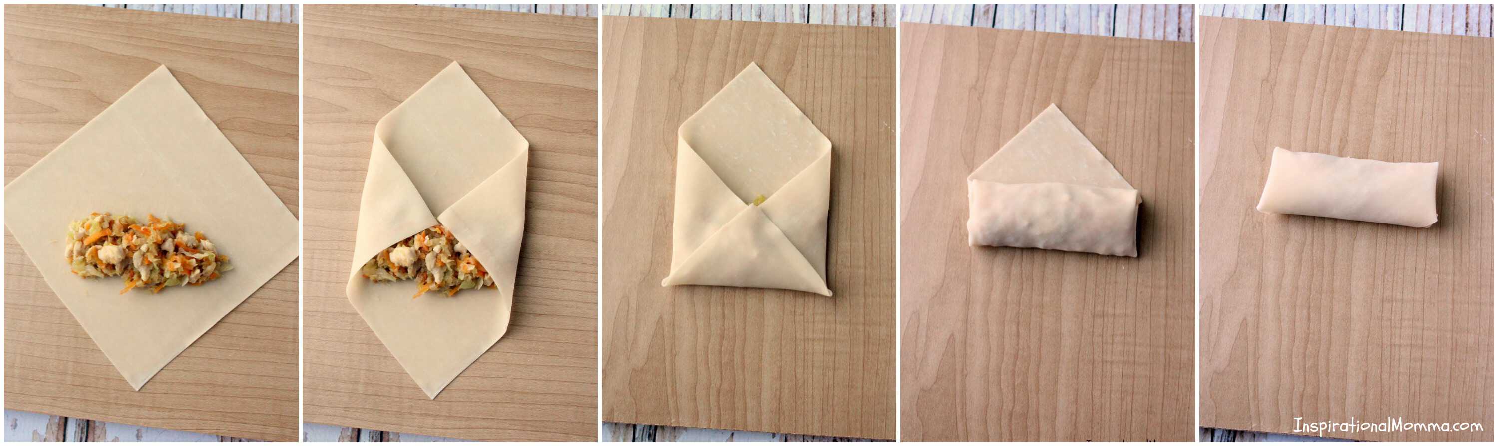 - Fold the sides in, the bottom up, and roll into a delicious egg roll.