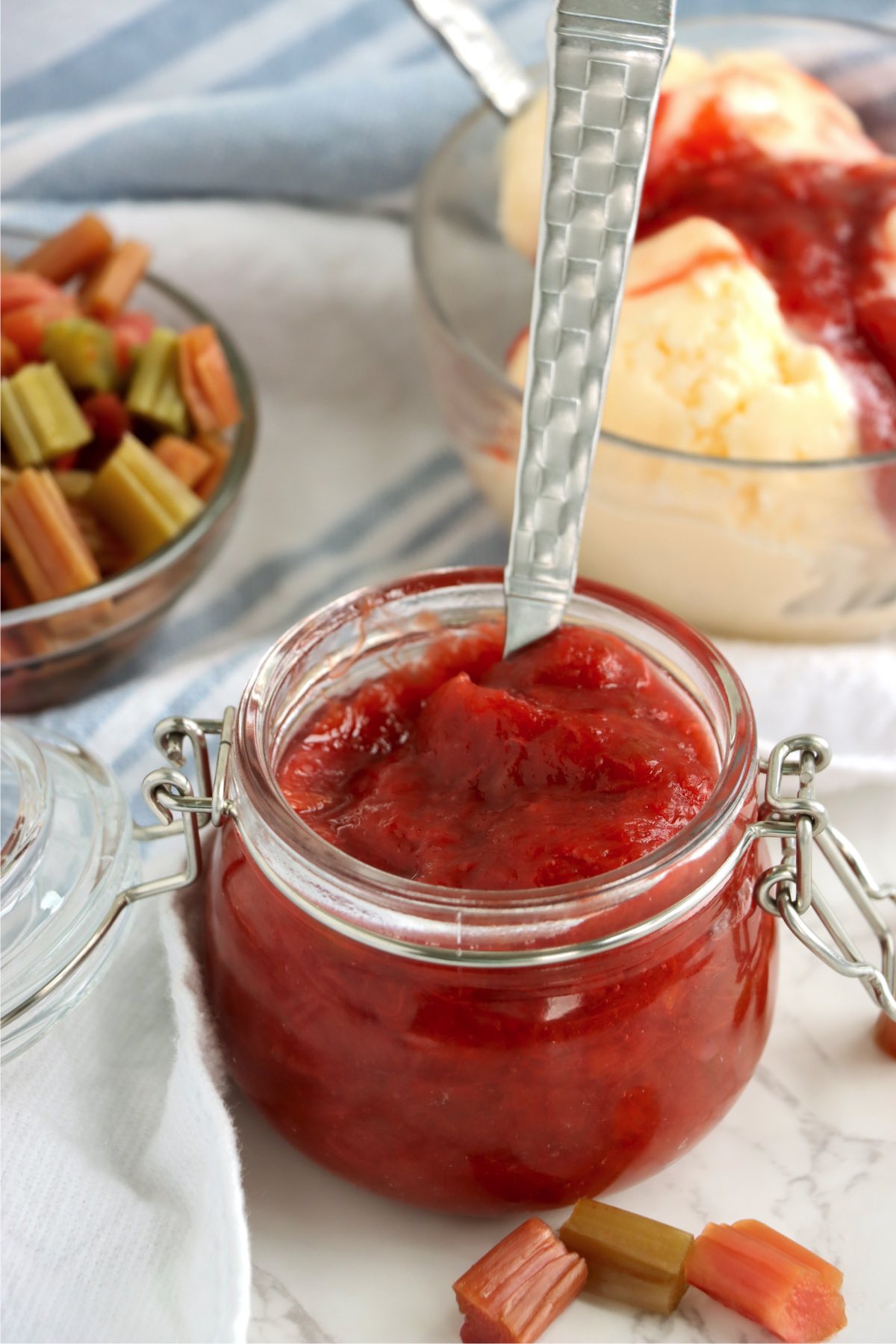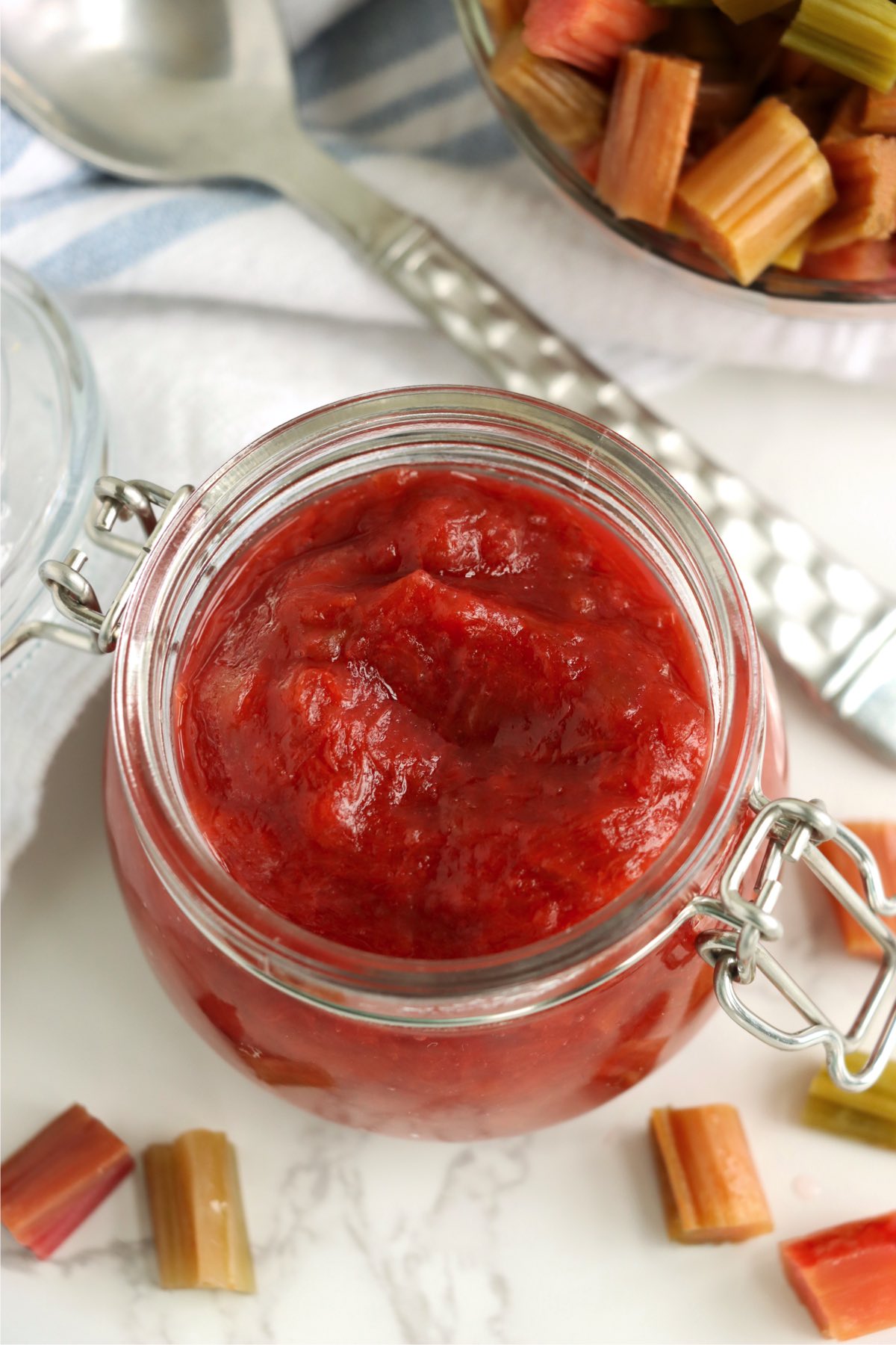 Homemade rhubarb sauce is so easy to make and so full of tasty, sweet and tangy flavor. It's a simple sauce recipe that's ready in no time and perfect over desserts or even meats for a bit of extra fun flavor.