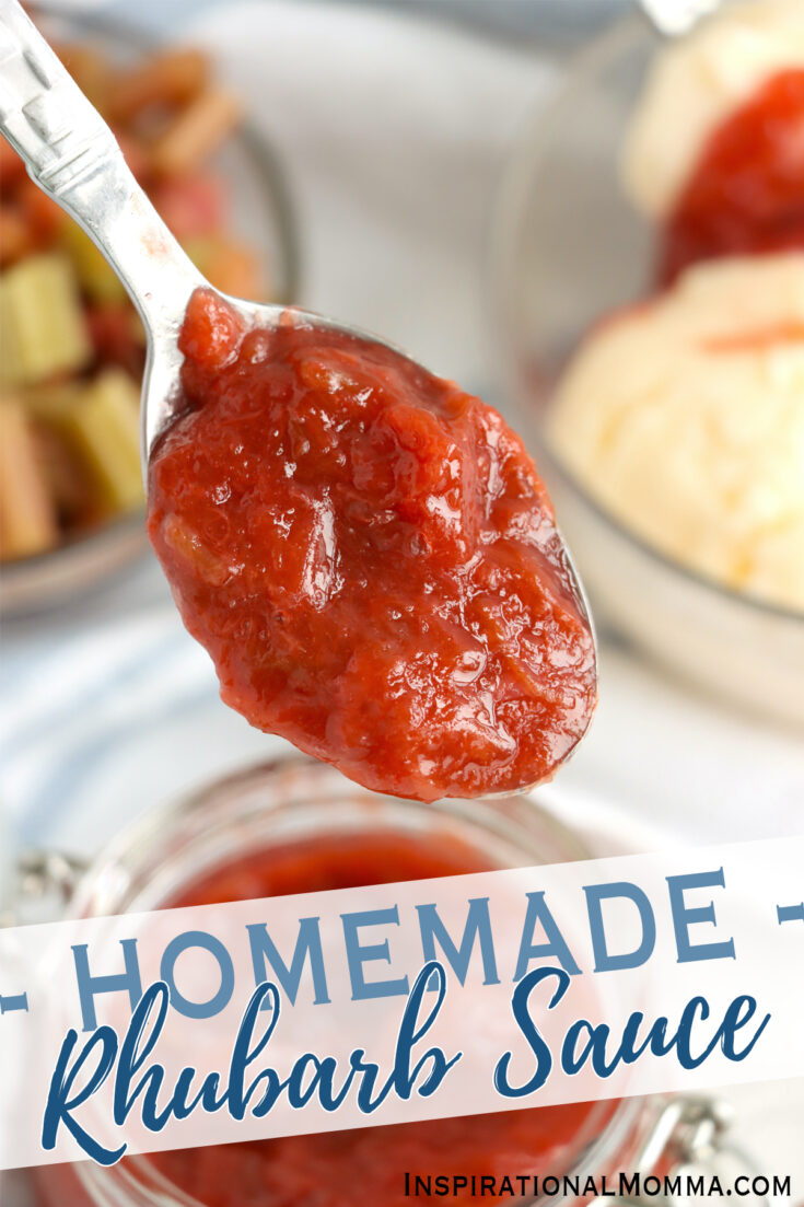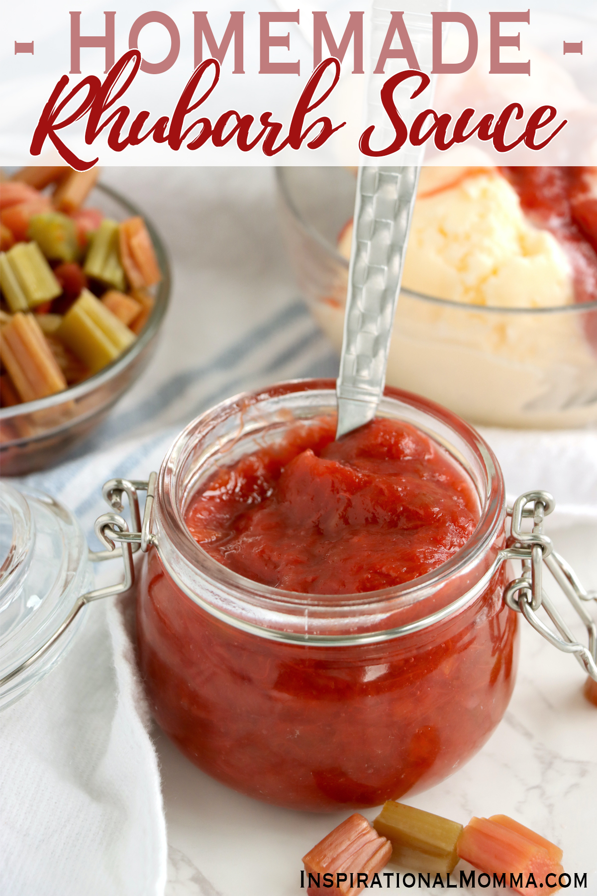 This homemade rhubarb makes a delicious, sweet-and-tart sauce perfect for any dessert. You can even use it on meats for a kick of fun flavor. This homemade rhubarb makes a delicious, sweet-and-tart sauce perfect for any dessert. You can even use it on meats for a kick of fun flavor. #inspirationalmomma #homemaderhubarbsauce #homemaderhubarbsaucerecipe