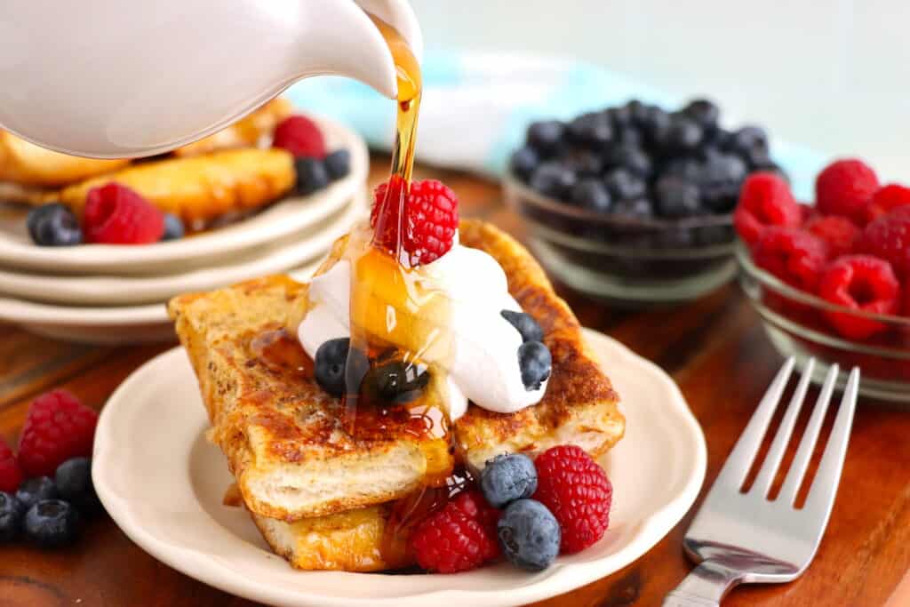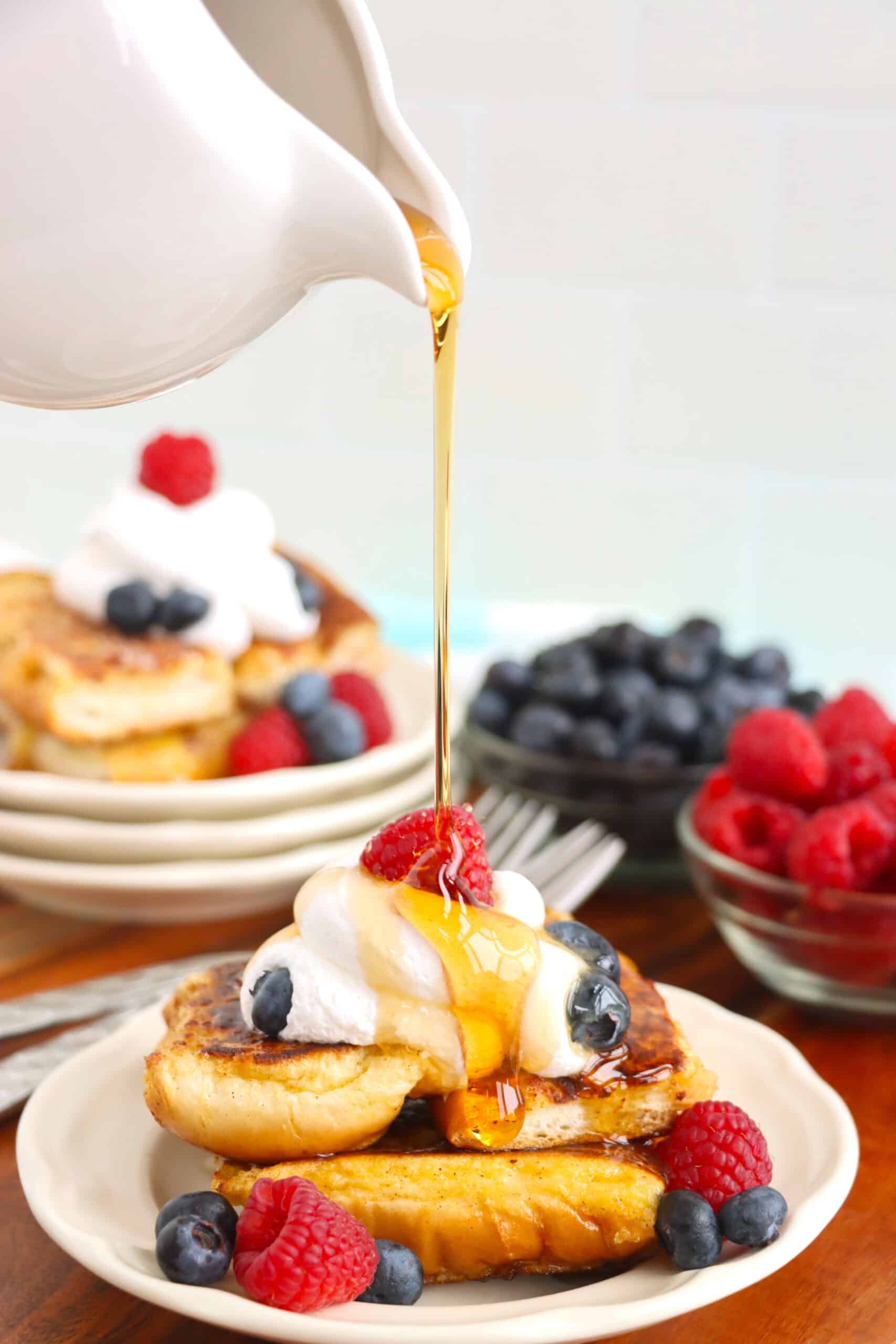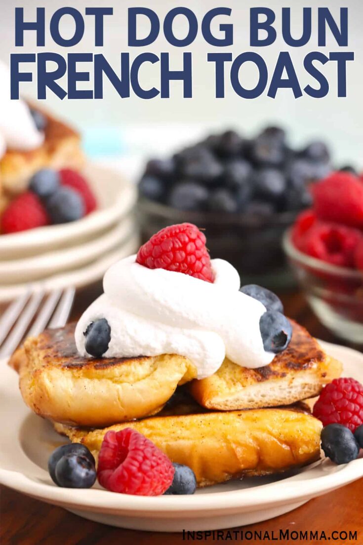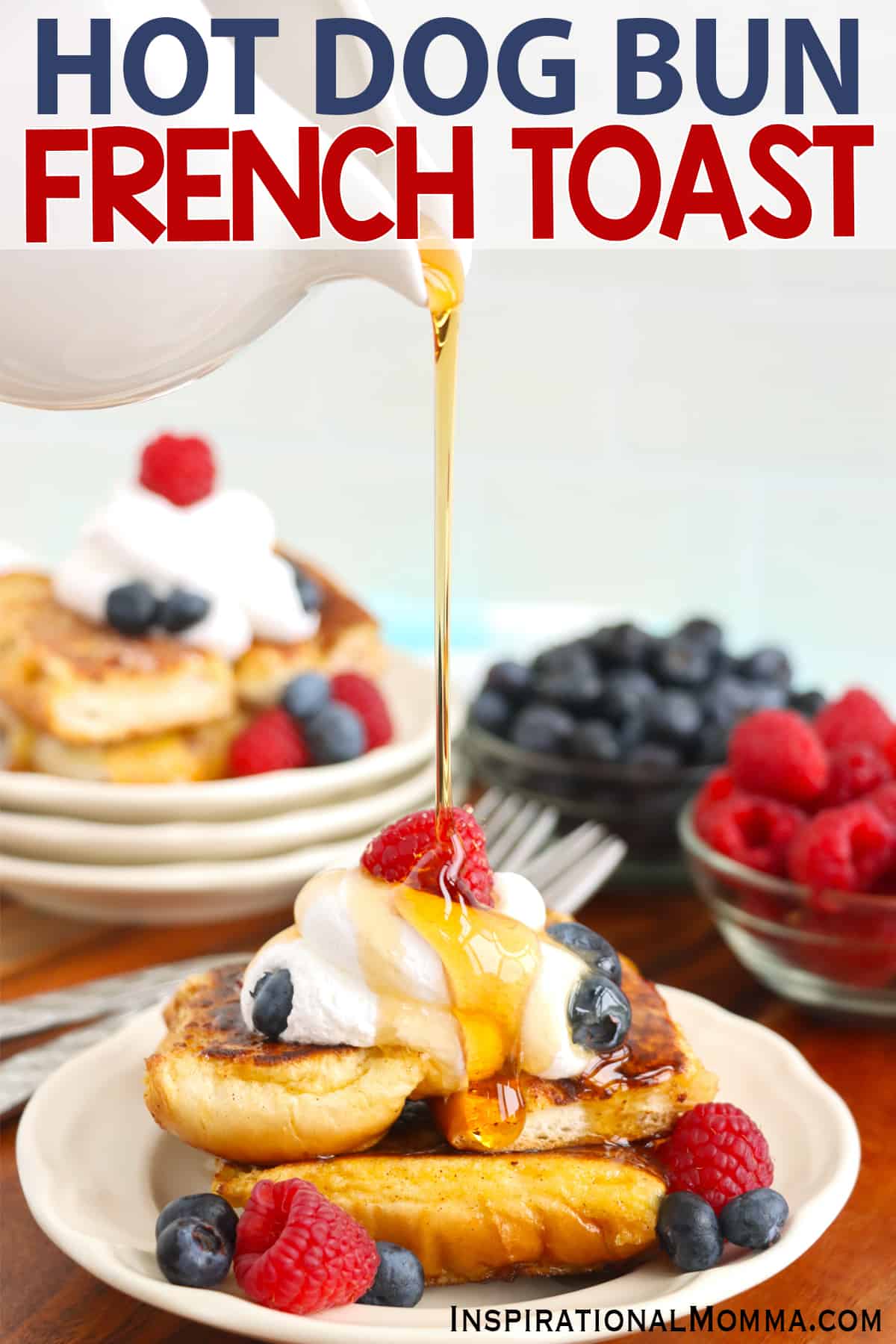Hot dog bun French toast might sound odd, but it's absolutely delicious. Soft, fluffy hot dog buns absorb all that delicious French toast egg mixture and cook up to golden perfection. Delicious!