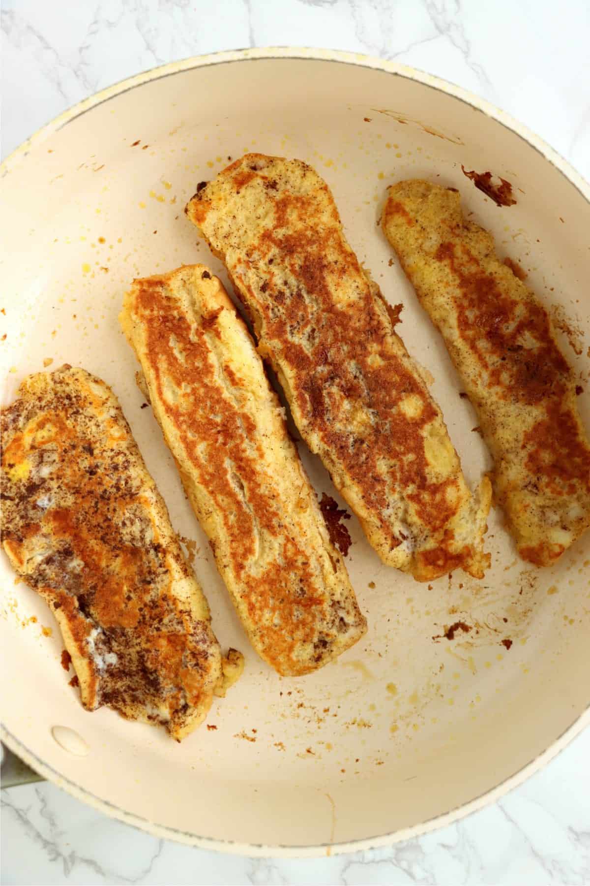 - Medium-low to medium heat is the ideal temperature range for golden brown, fully-cooked French toast.