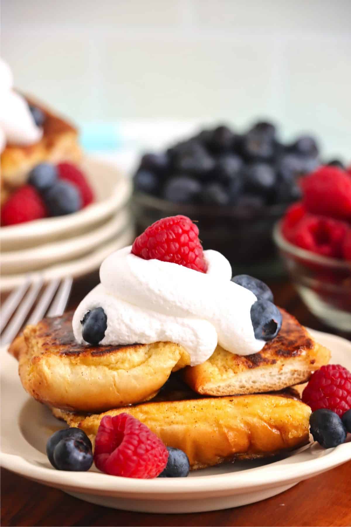 They actually work amazingly well because they're thick but soft. They have a TON of bready real estate in the center of the buns to soak up all the French toast goodness.