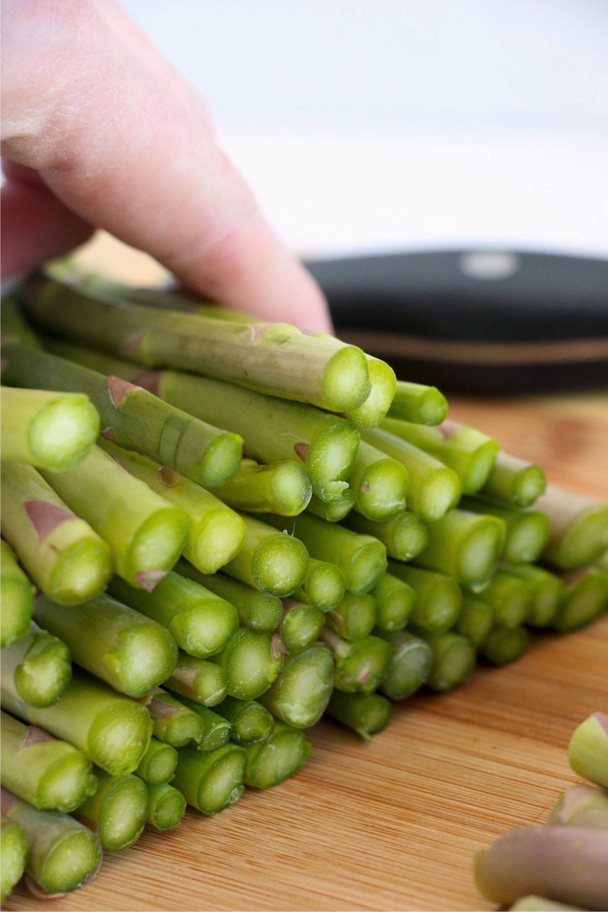 - You only need to trim the very ends off of the asparagus. Don't waste any.