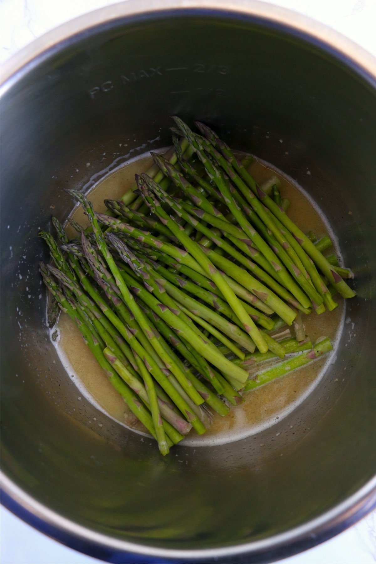 - Trim bottoms of asparagus off to be sure it fits in the instant pot.
