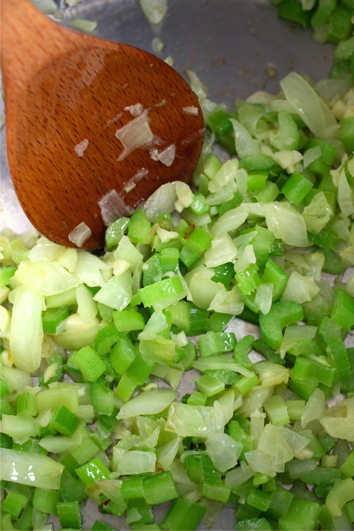 - Be careful not to burn your onions and celery when sauteeing. Mix constantly while cooking them.