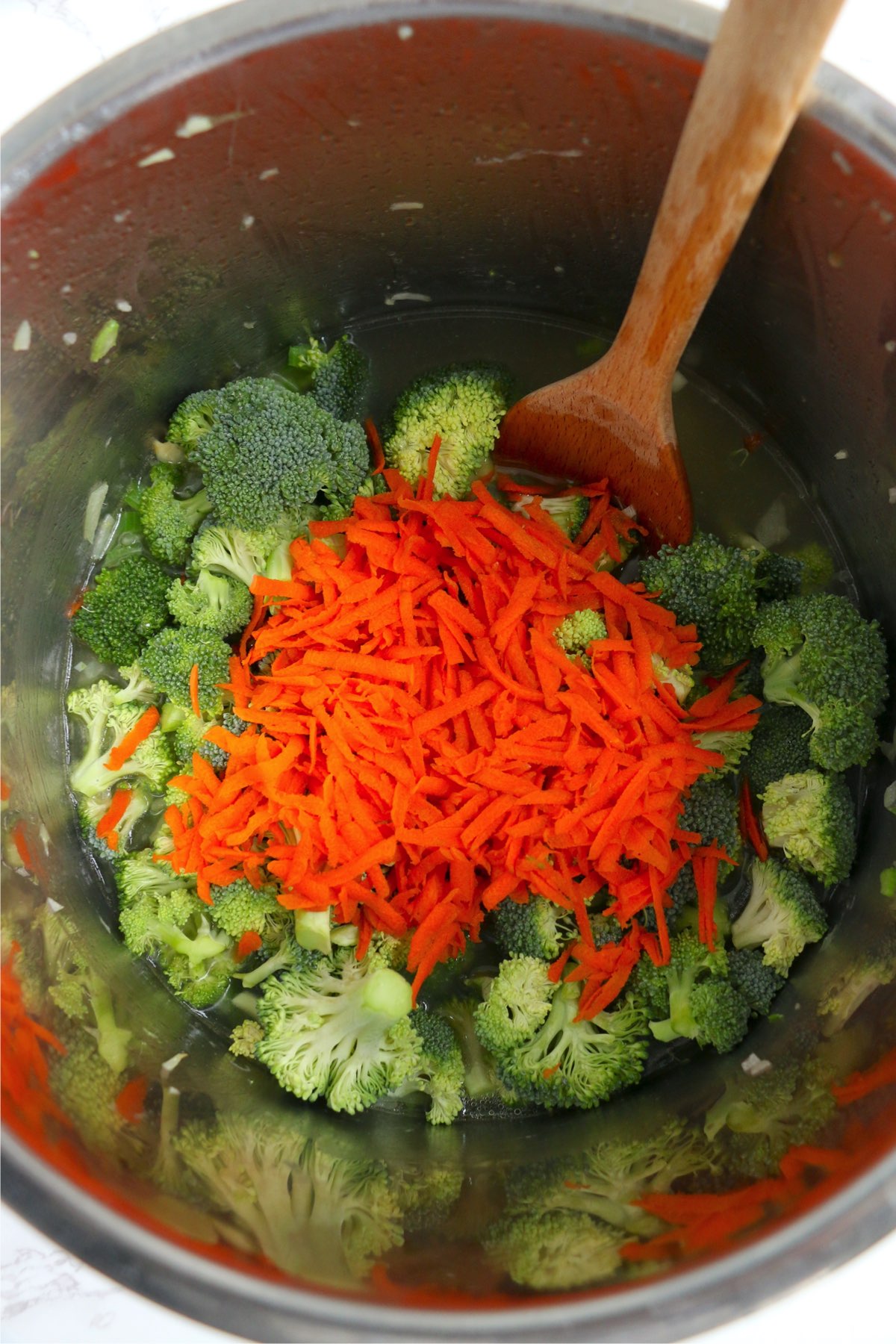 Step 6: Add broccoli and carrots to the Instant Pot.