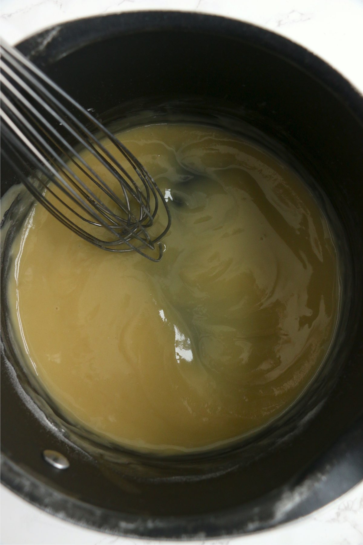 - In the meantime, in a medium saucepan, melt 1⁄2 cup of butter. Slowly whisk in flour until blended and creamy. Set aside.