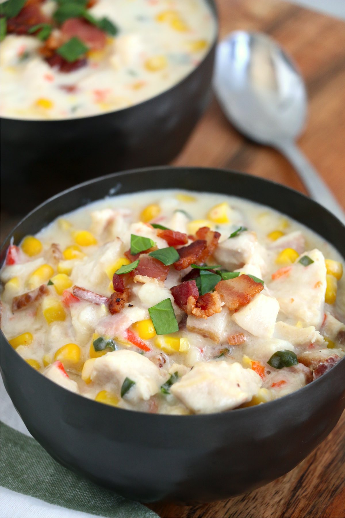 Instant Pot chicken corn chowder is rich, creamy, and delicious. It's also ready in a snap. It's a great weeknight meal.