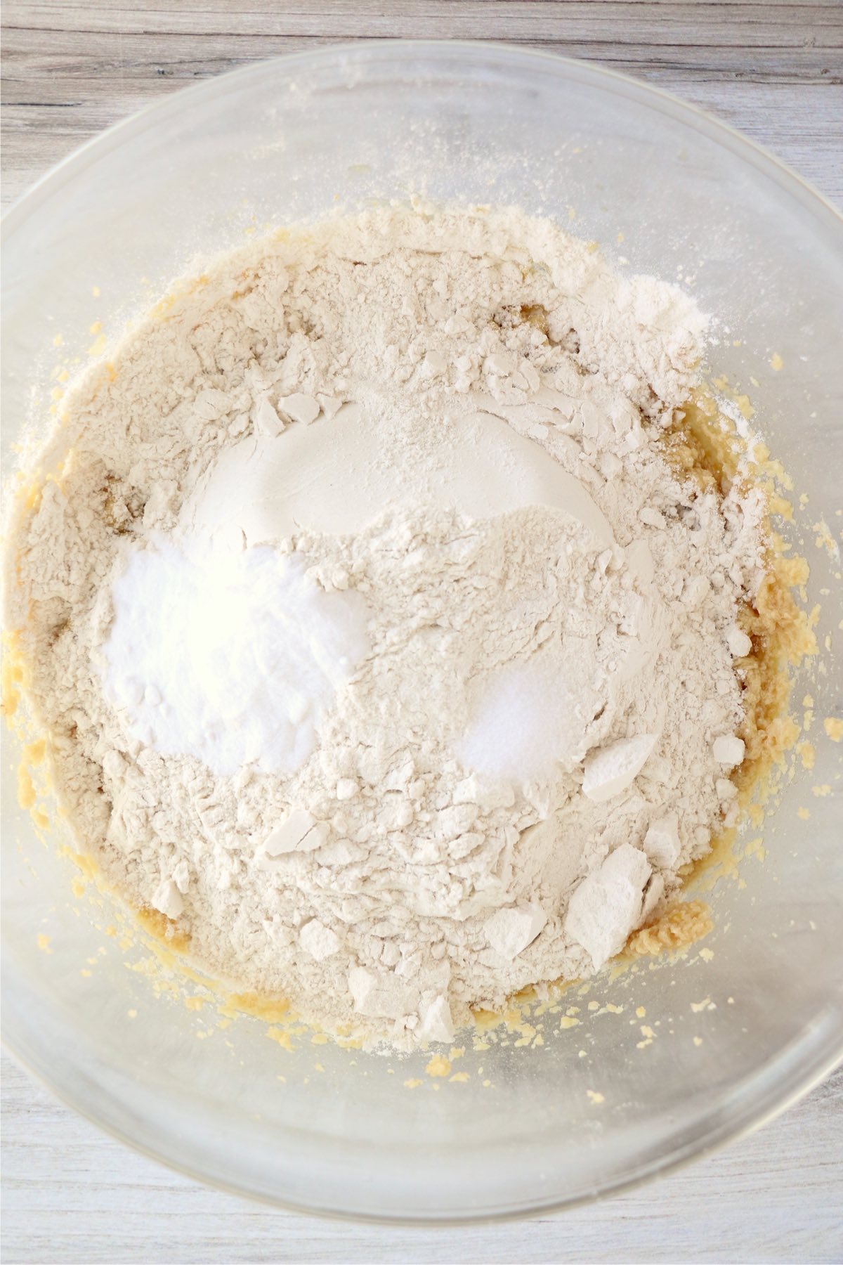 Step 3: Add salt, soda, and flour and beat until smooth.