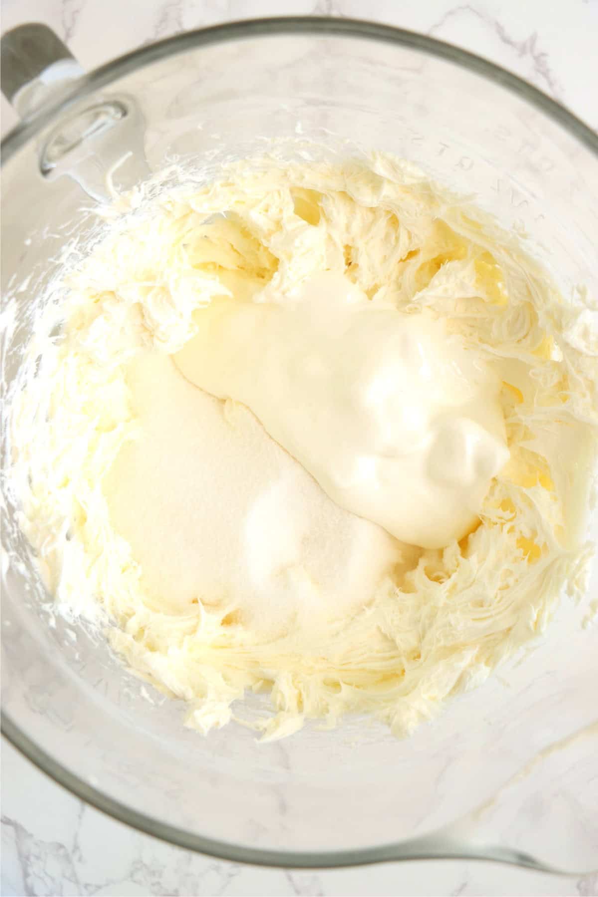 - Add sour cream and sugar. Beat again.