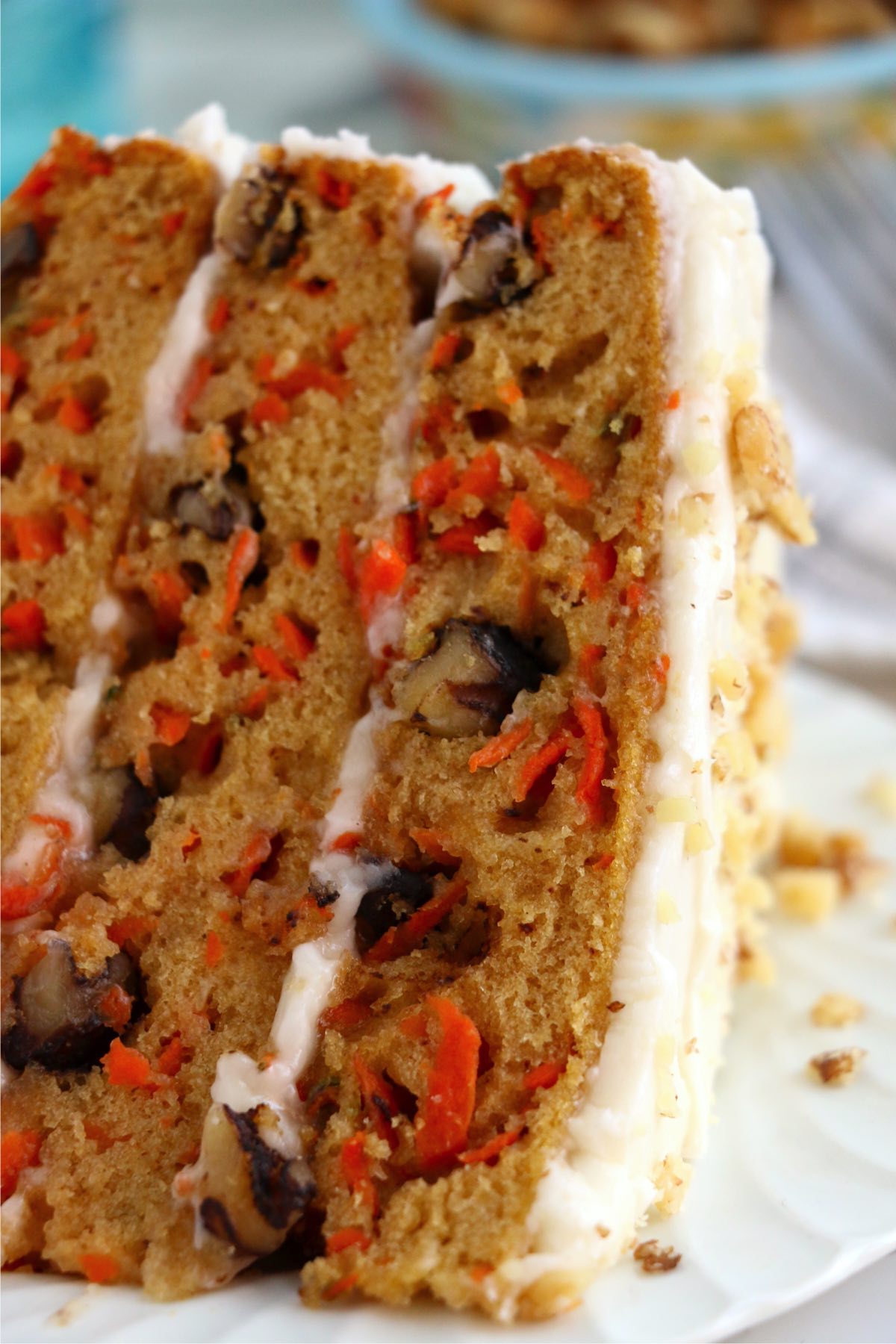 This naked carrot cake with cream cheese frosting is an absolute delight. Every bite is filled with the delicious flavors of carrots and nuts.