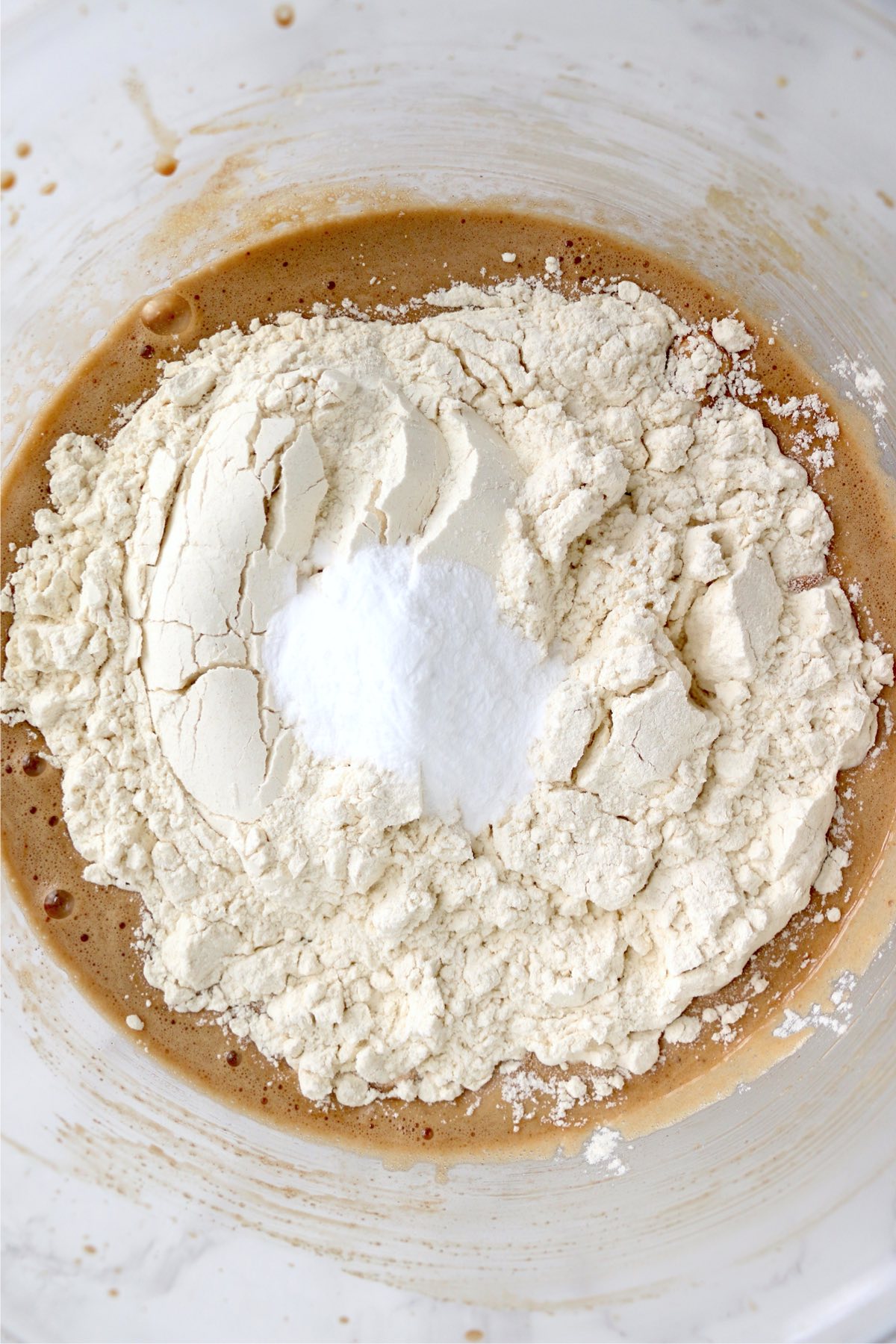 Step 6: Add flour and baking soda. Beat again until smooth.