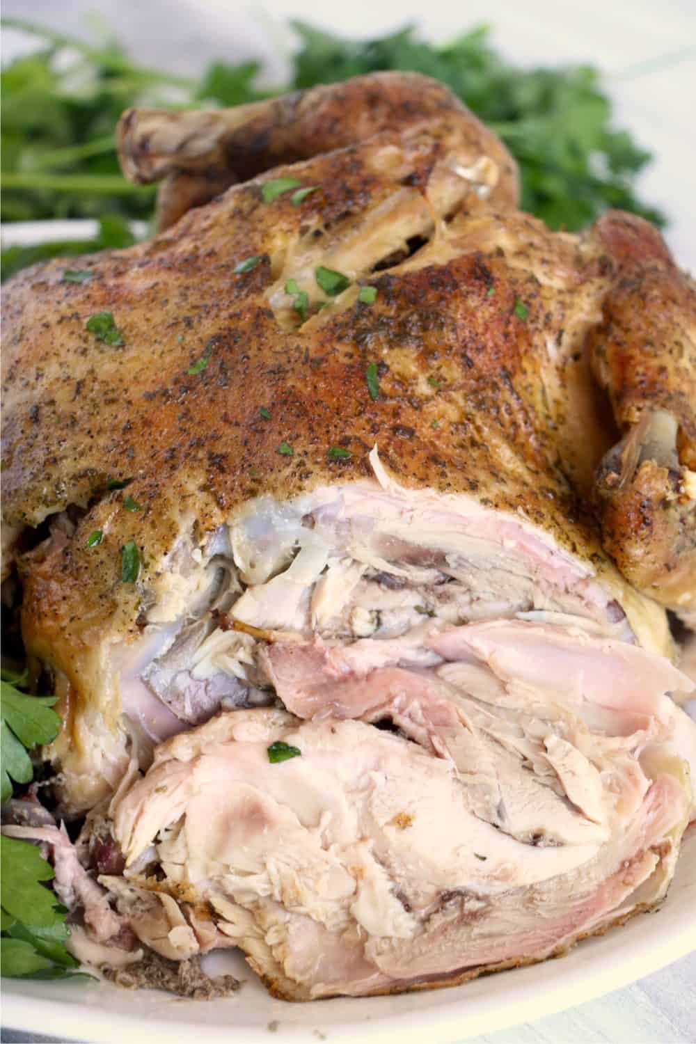 And if you do notice that your chicken is dry or overcooked, don't throw it away. Just use it for another herb-roasted chicken recipe where you can mix it with other ingredients. If this is your situation, try this Homemade Chicken Dumpling Soup recipe!