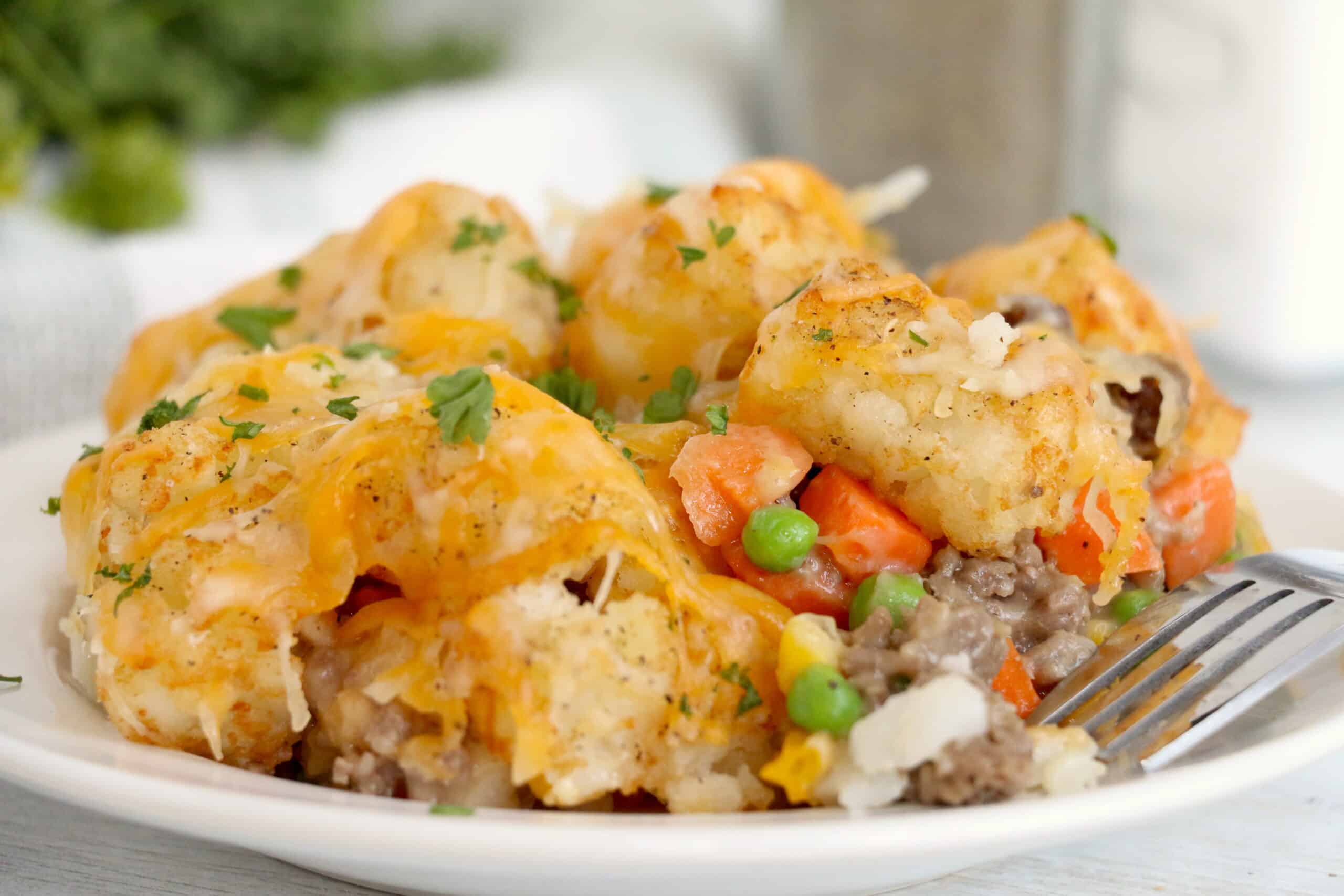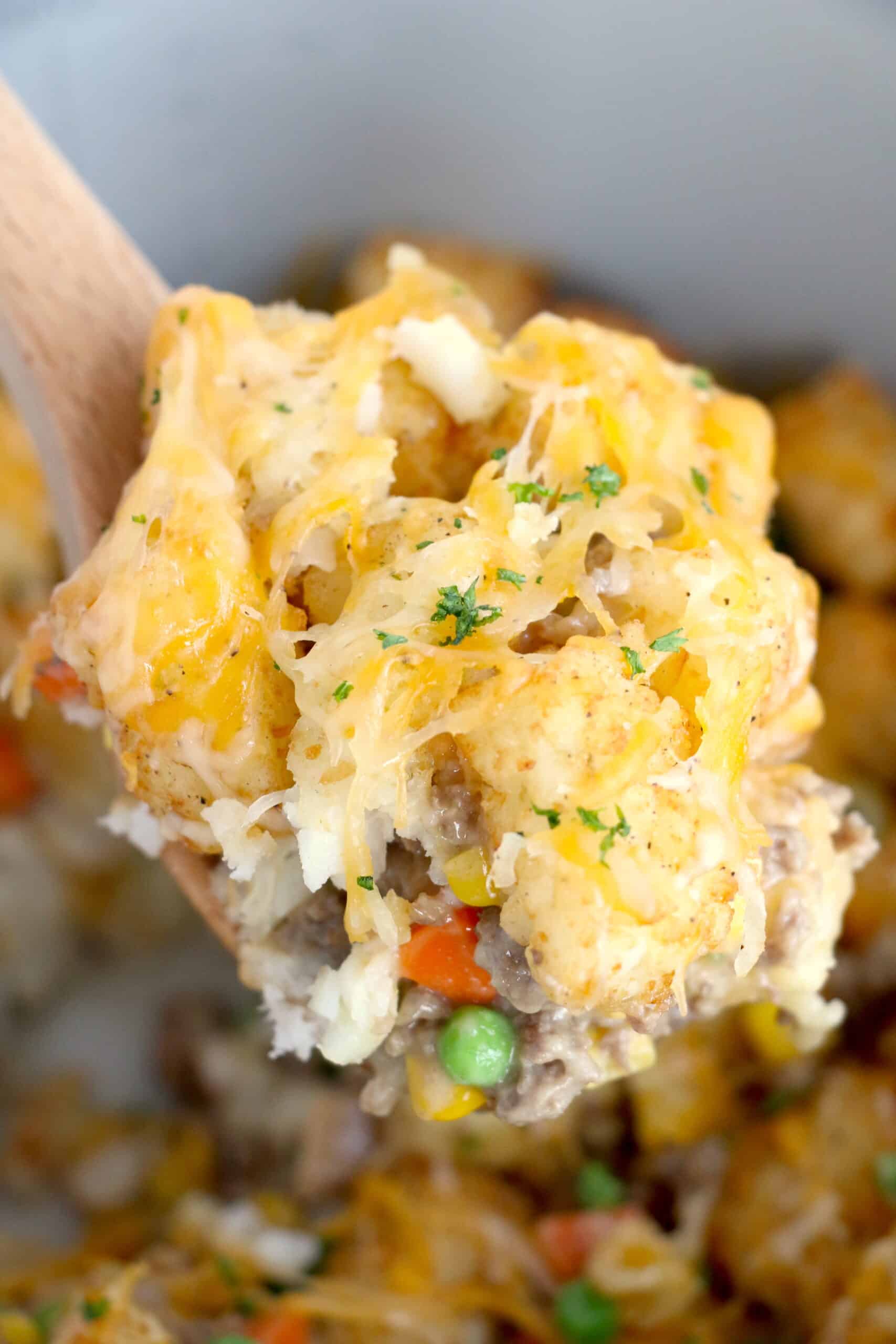 I love this recipe because it is easy to make and tastes amazing! It's a great dish for the whole family. Garnish your Ninja Foodi Tater Tot casserole with freshly shredded cheese and green onions.