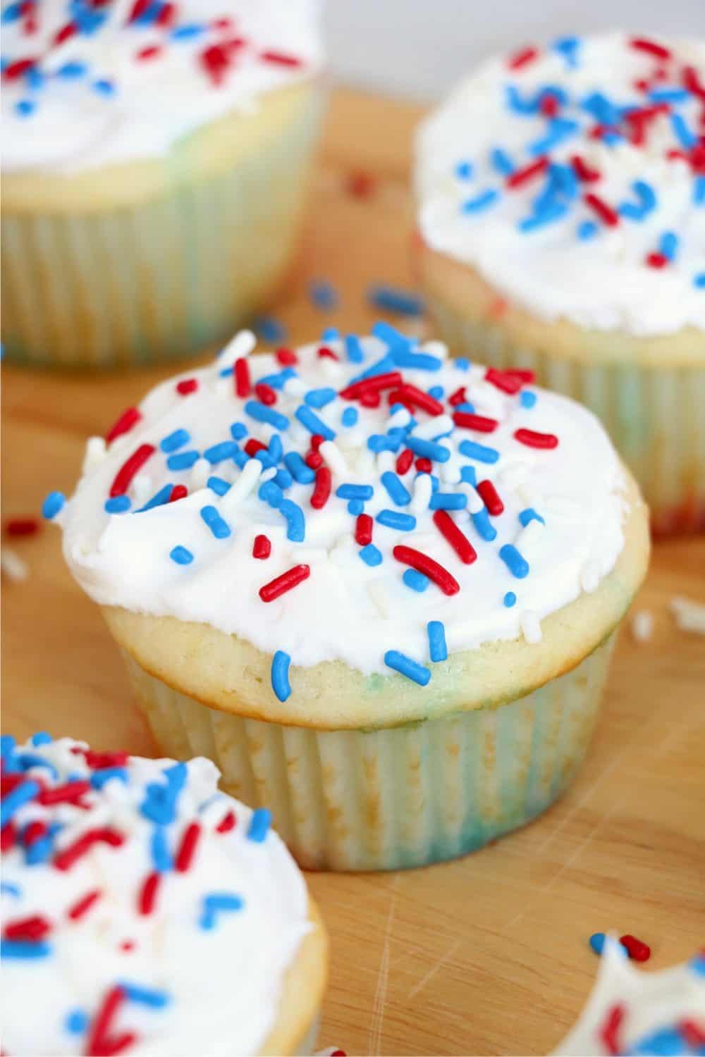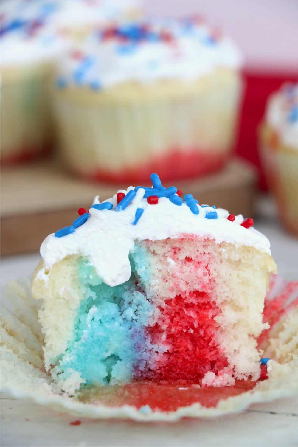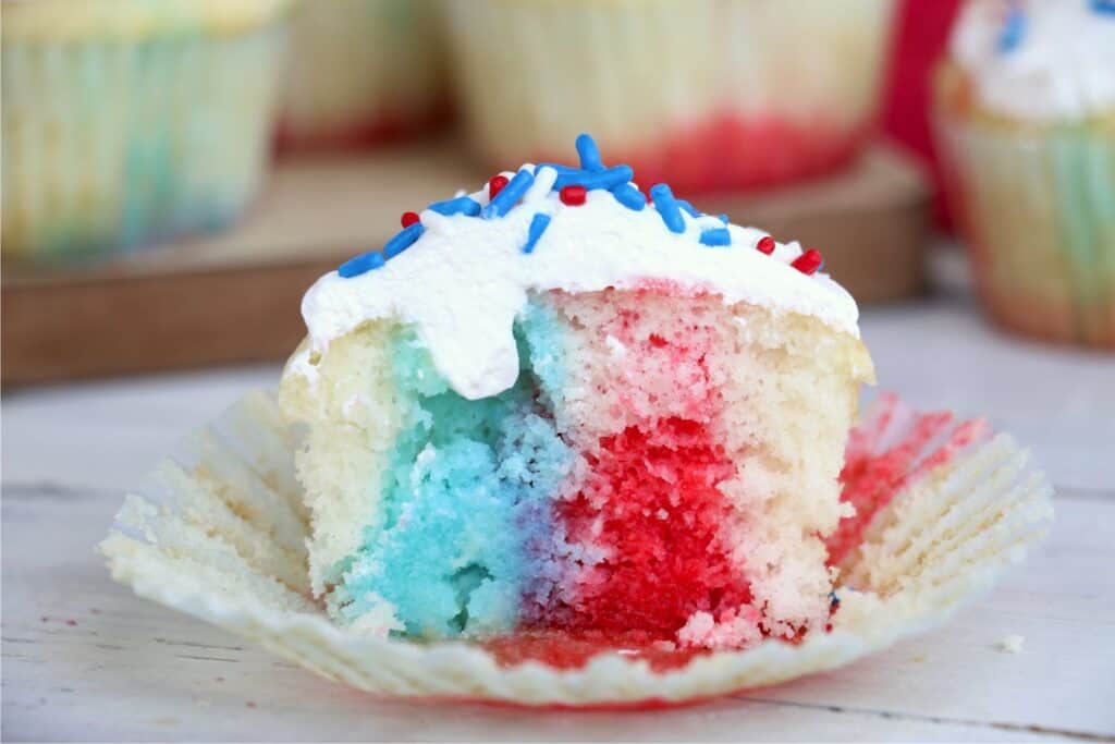 I used cherry and berry blue jello to make these cupcakes. However, you can use any red and blue jello. The flavor of the jello you use will change how your cupcakes taste.