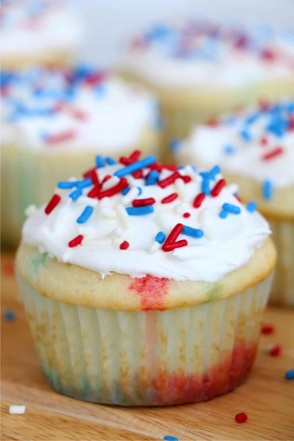 Not only are these cupcakes festive and fun, they are also sweet and tasty. Even the kids can help make these red, white and blue cupcakes. I used to let my son decide the color patterns for the cupcake and he liked to frost them when he was little.