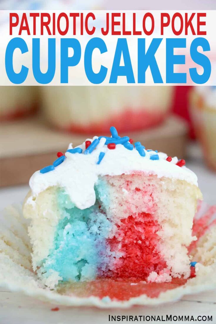 Jello Poke Cupcakes are simple to make and look great on your summer dessert table. This cupcake is festive and the kids can help make them.