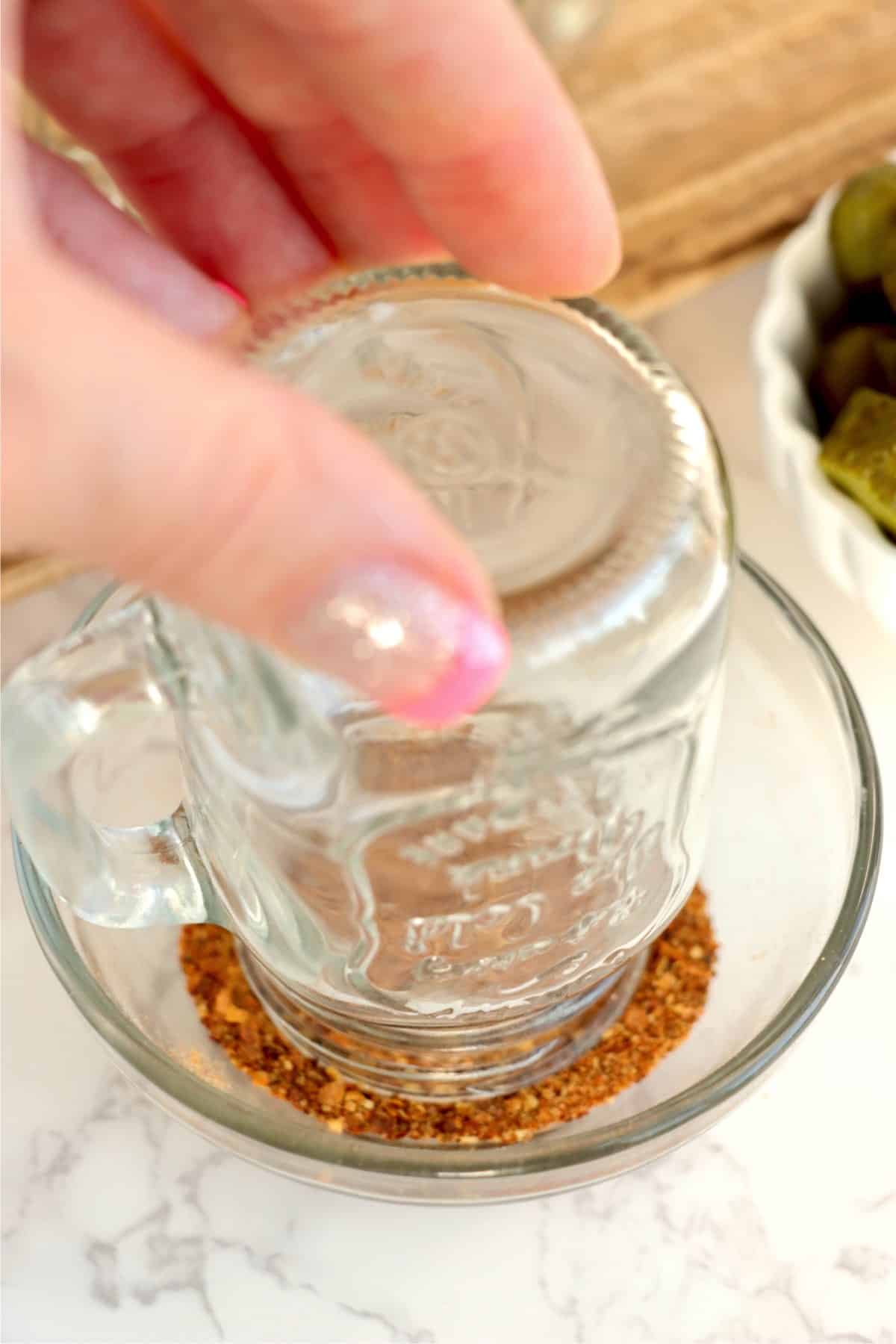 - You only need to moisten the rim of the glass before dipping it in the Tajin. You don't need to drown it.
