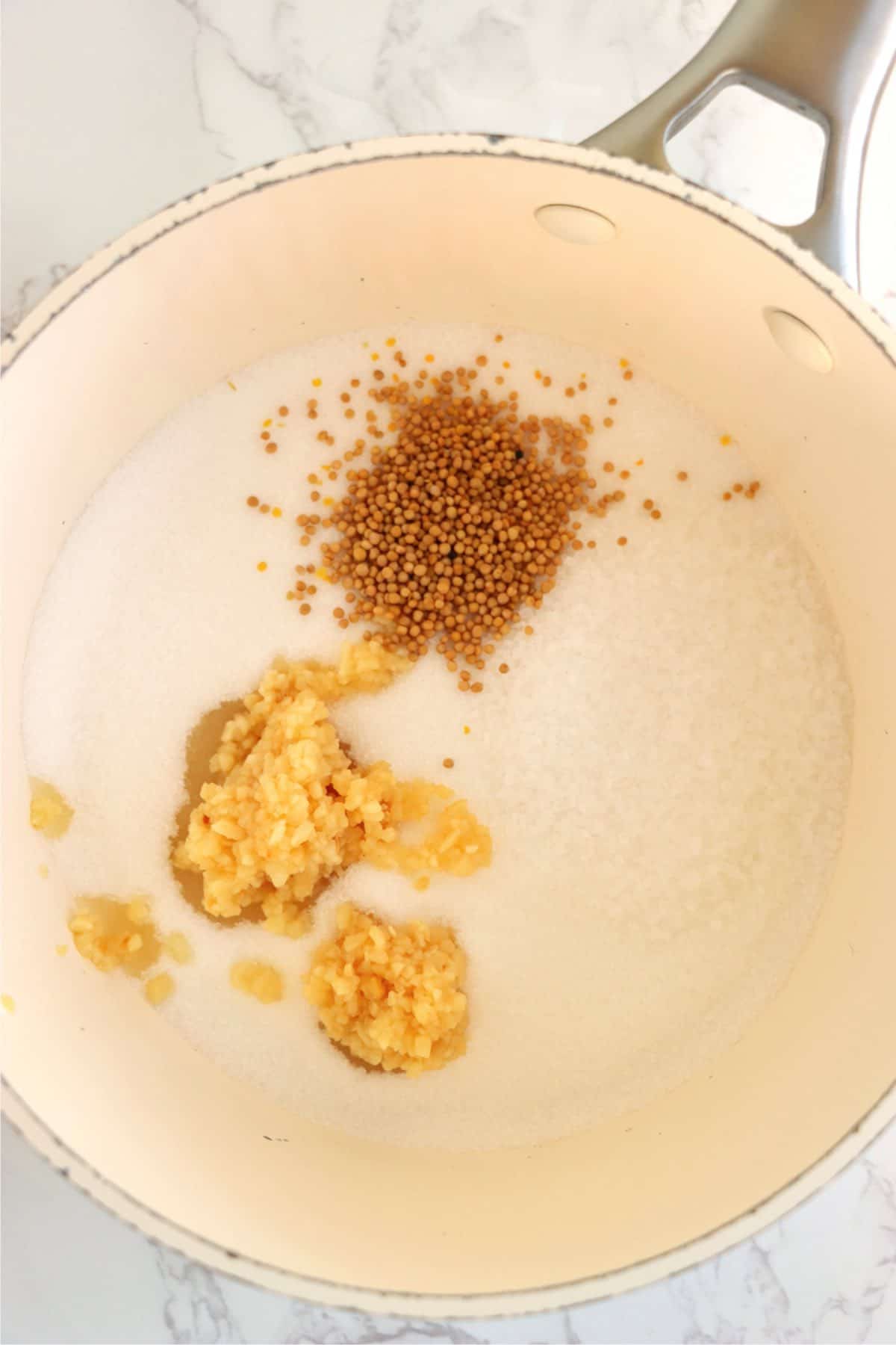 - Add remaining ingredients to a medium saucepan. Bring to a boil.